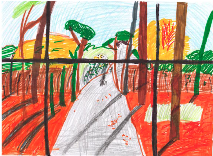 O ja, ik heb wel iemand getekend die op het pad wandelt want dat vond ik beter.