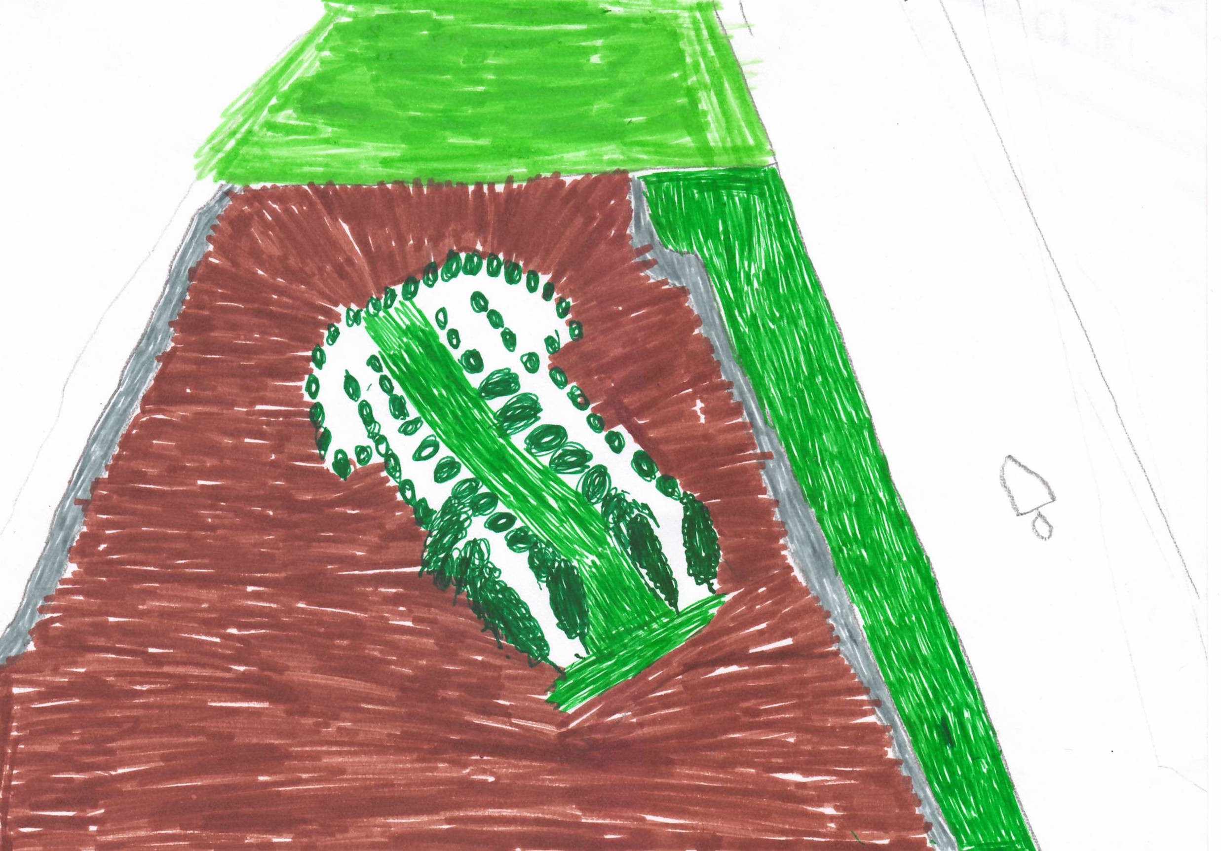Ik vind het jammer dat die boot er op staat. Dat vind ik niet zo mooi en leidt ook een beetje af van het bos. En misschien dat hij ook een andere vorm had kunnen maken, bijvoorbeeld een pijl en boog of zoiets. Maar hij heeft het mooi gedaan hoor!