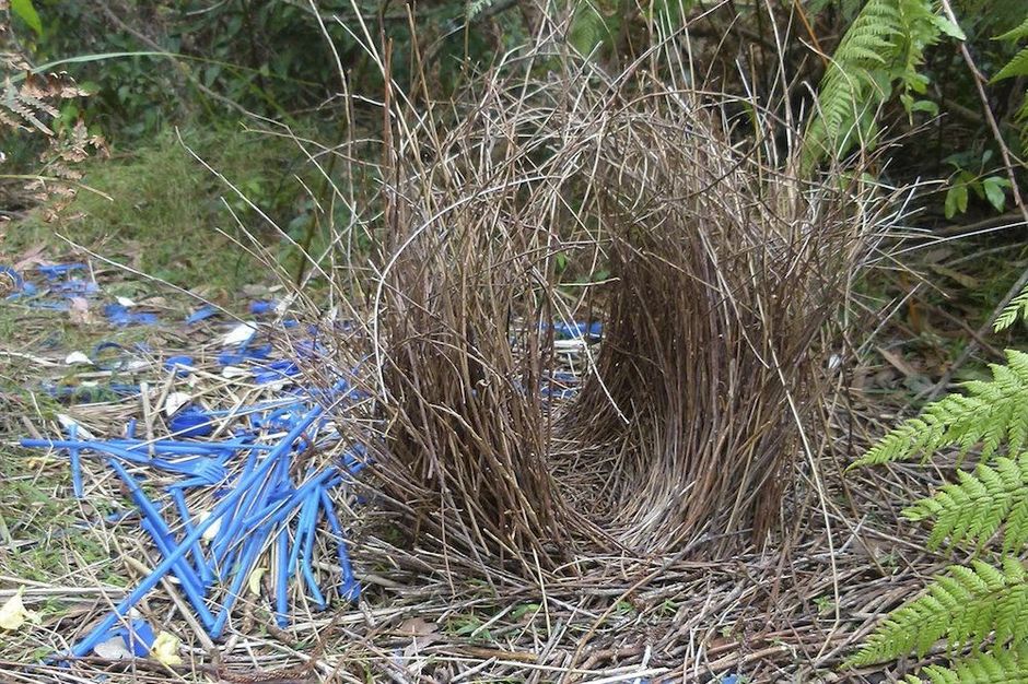 Het is zeker niet de meest kleurrijke vogel die je kunt vinden in de dierenatlas. Des te ironisch is het dat deprieelvogel uit Nieuw-Guinea en Australië de meest kleurrijke voorwerpen uit de natuur verzamelt. Ze bouwen een nest van takjes dat doet denken aan een altaar, en decoreren hun huis vervolgens met bessen, bloemen, paddenstoelen, steentjes, veren en glimmende vleugels van torren. Elke vogel heeft zo zijn eigen voorkeuren, met name voor kleur. Alle voorwerpen worden keurig gesorteerd. Verwelkt een bloemetje, dan zoekt de prieelvogel een nieuwe. Past een steentje niet in het geheel? Dan verft de vogel deze met het sap van bessen in een passende kleur. Hoe saaier de vogel, hoe mooier zijn verzameling.