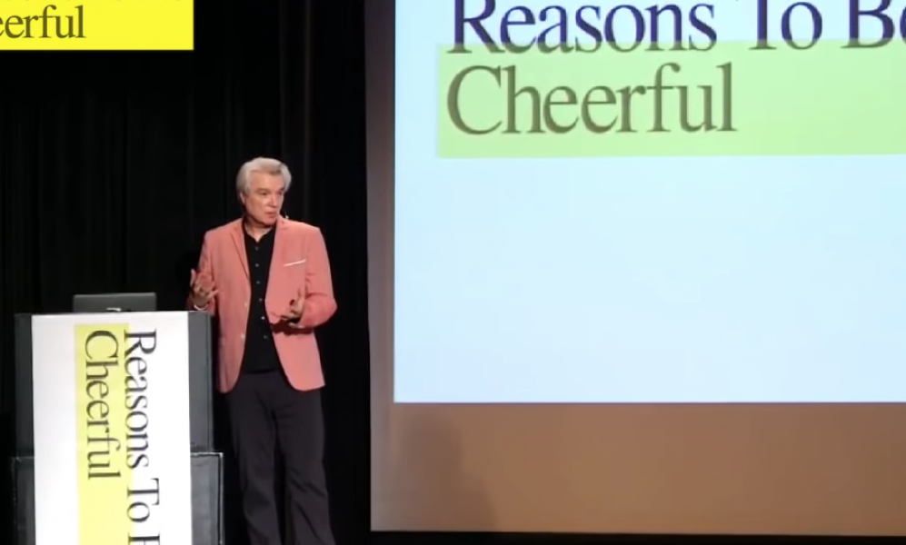 Talking Heads voorman David Byrne start zijn ochtend vaak met een kop koffie en het lezen van de krant. Maar juist door het lezen van het nieuws vervolgt Byrne zijn dag vaak in half depressieve stemming. Daarom verzamelt de kunstenaar online ‘reasons to be cheerful’. Als remedie, zijn zelfverzonnen therapie, spaart hij nieuws dat hem eraan herinnert dat er ook positieve dingen gebeuren in de wereld. Zoals koolstofneutrale stadsplanning in Zweden, een anti-corruptie spelshow in Afrika en zijn ontdekking van een enorme digital queer community in West Virginia.