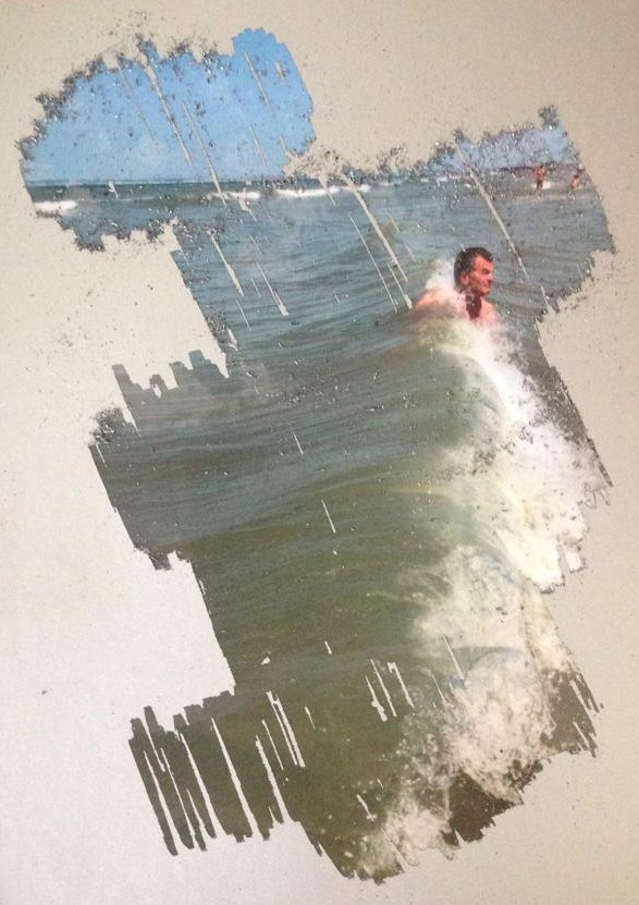 Easy Level Lucky Scratching Card (2020) van Matthieu Reijnoudt (1994<spanArial”,sans-serif”>°) is het eerste werk in die tentoonstelling. Het is een matzilveren soort ansichtkaart, die – zoals de titel al doet vermoeden – een kraskaart blijkt te zijn. In het olijke bijschrift wordt het een “beautiful aqua jolly special” genoemd. Het spoort je aan tot krassen en belooft altijd prijs – “a big major quality tax-free prize in the waves” zelfs. Munt in de aanslag. Al krassend vallen de waterreferenties op hun plek. Van achter de grijze bovenlaag komt een golvende, groene zee tevoorschijn. Een man deint mee op een omslaande golf en kinderen spelen in de verte. De identiteit van de man is onbekend, de foto een willekeurig beeld uit de tijd dat reizen nog mogelijk was. “To be rotator of this quirky kayak means to philosophize on water in cadence, guided by a majestic vox”, leest het bijschrift. Het is de mysterieuze stem van de kunstenaar die je tot krassen aanspoort. Toch is er een verschil tussen aanleiding en oorzaak: het is niet duidelijk of de kunstenaar je in beweging heeft gezet of je zelf in beweging bent gekomen.