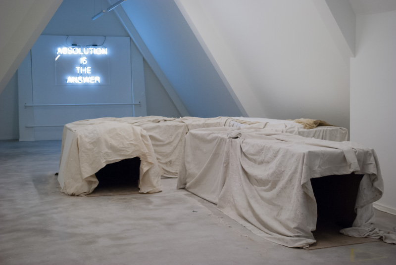 Quote Me If I’m Wrong is the group exhibition of thirty-three graduating Fine Art students of the Royal Academy of Art, The Hague. Sculptures, paintings, installations, videos and performances meet each other on the fourth floor of the monumental building of Spaces. All the work is new, and has very recently been developed at the KABK. But there’s something else that’s special about this group show. All participating artists also had another role in this self-oranised exhibition.