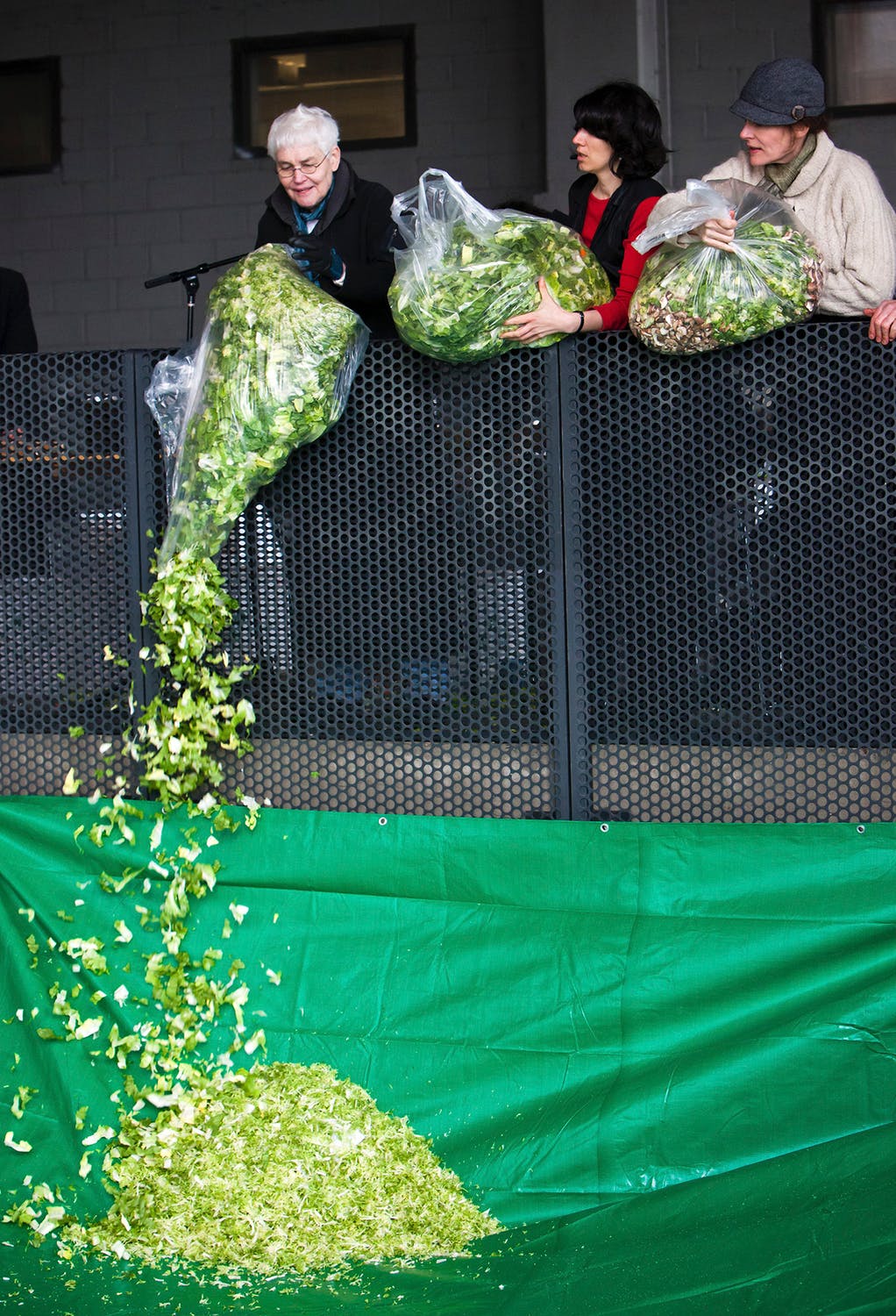 Veel kunstenaars hebben zich beziggehouden met dit sociale aspect van eten. Fluxus-kunstenaar Alison Knowles maakt al sinds 1962 gigantische salades in haar performance Make a Salad. Op grote hoogte, begeleid door livemuziek, prepareert ze enorme hoeveelheden verse ingrediënten en dressing die ze naar beneden gooit in een groot zeildoek. Vervolgens mixt ze de salade met een hark en wordt het gerecht uitgeserveerd aan het publiek. Een speels en ongecompliceerd werk: geen enkele uitvoering van Make a Salad is hetzelfde. Elke versie wordt gemaakt met andere hoeveelheden en andere ingrediënten.