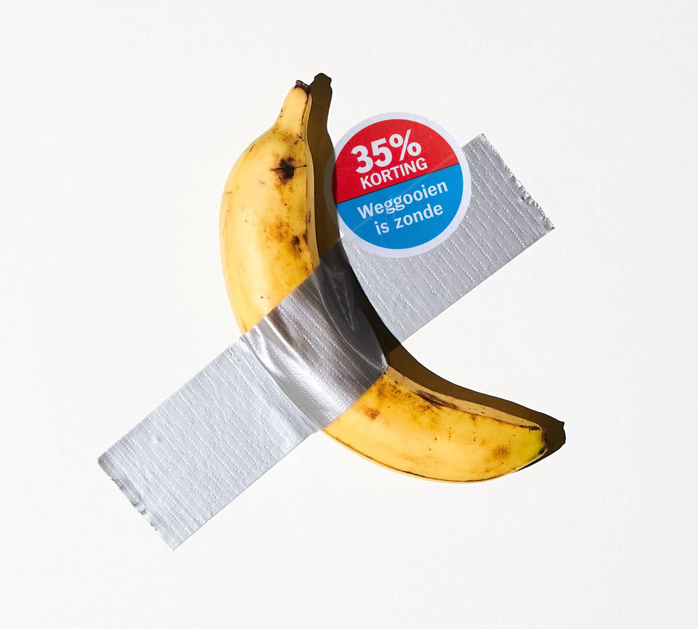 Het kunstwerk van Cattelan leidde tot ophef vanwege de prijs, maar natuurlijk ook vanwege de knulligheid die inherent aanwezig is in zowel banaan als ducttape. Ducttape is de eenvoudigste en botste manier om iets snel aan een muur te bevestigen, en de banaan is zo ongeveer het lulligste object denkbaar. “Bananas are important. As humans, they remind us of a lot of other things”, zei Cattelan in een interview in mei 2019, maanden vóór de onthulling van Comedian. De banaan is een fallus, maar eentje zonder bravoure. Er is een reden dat de aubergine de go-to emoji voor het mannelijk geslacht is geworden: de aubergine is groot en de paarse kleur is erotisch en etnisch ambigu. De banaan daarentegen is dunner, weeïg van smaak en wit met geel – niet bepaald de meest sexy kleuren. De banaan is het toppunt van lulligheid. En daarmee werd Comedian een heel flauw, duur grapje.