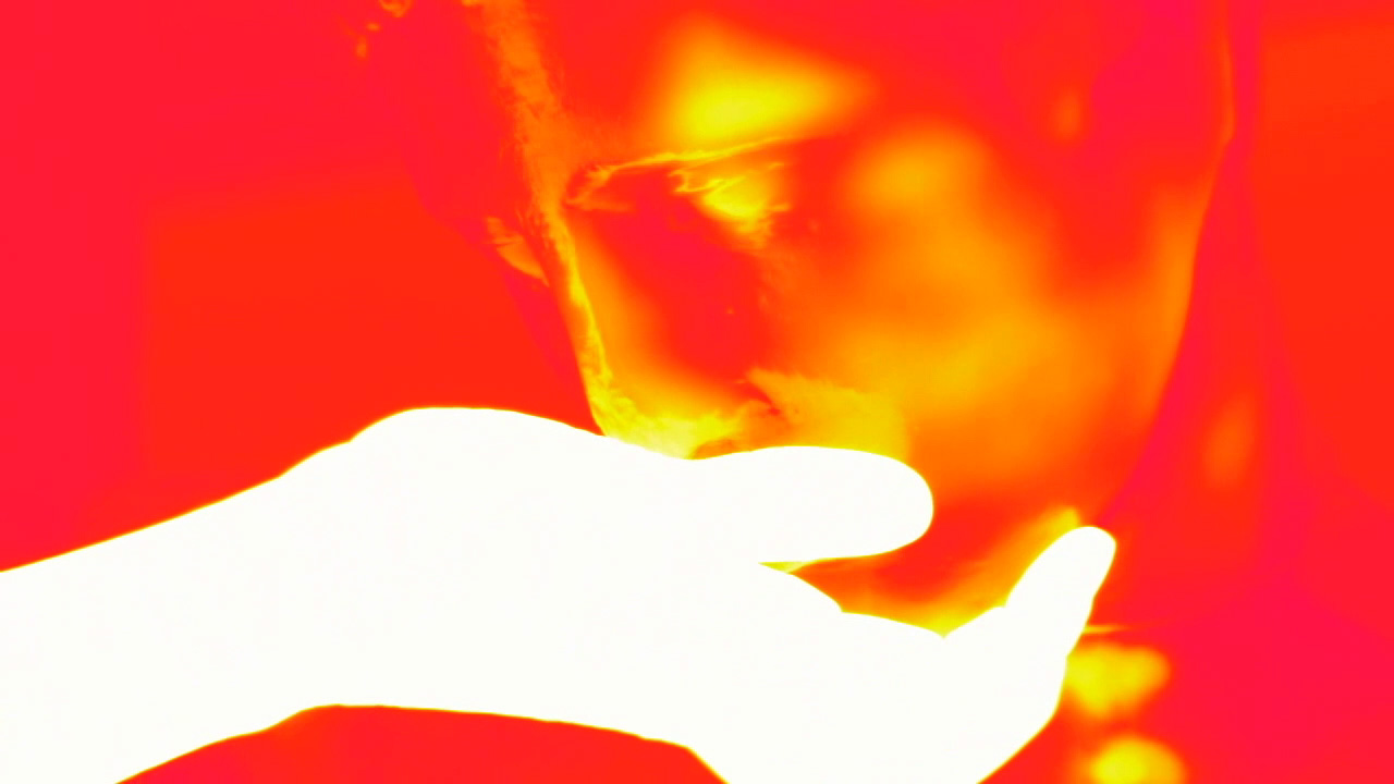 Ik maakte eerder een videowerk over de relatie tussen handen en beelden. In The Radiance of Sensible Heat filmde ik gipsafgietsels van historische sculpturen uit het depot van de Rijksakademie in Amsterdam met een warmtebeeldcamera. In de video raak ik de beelden aan en door de warmteoverdracht van mijn hand op het beeld worden de beelden zichtbaar. Ze verdwijnen langzaam weer uit beeld wanneer ik mijn hand wegtrek. Zo worden ze als het ware door mijn hand ‘geactiveerd’.