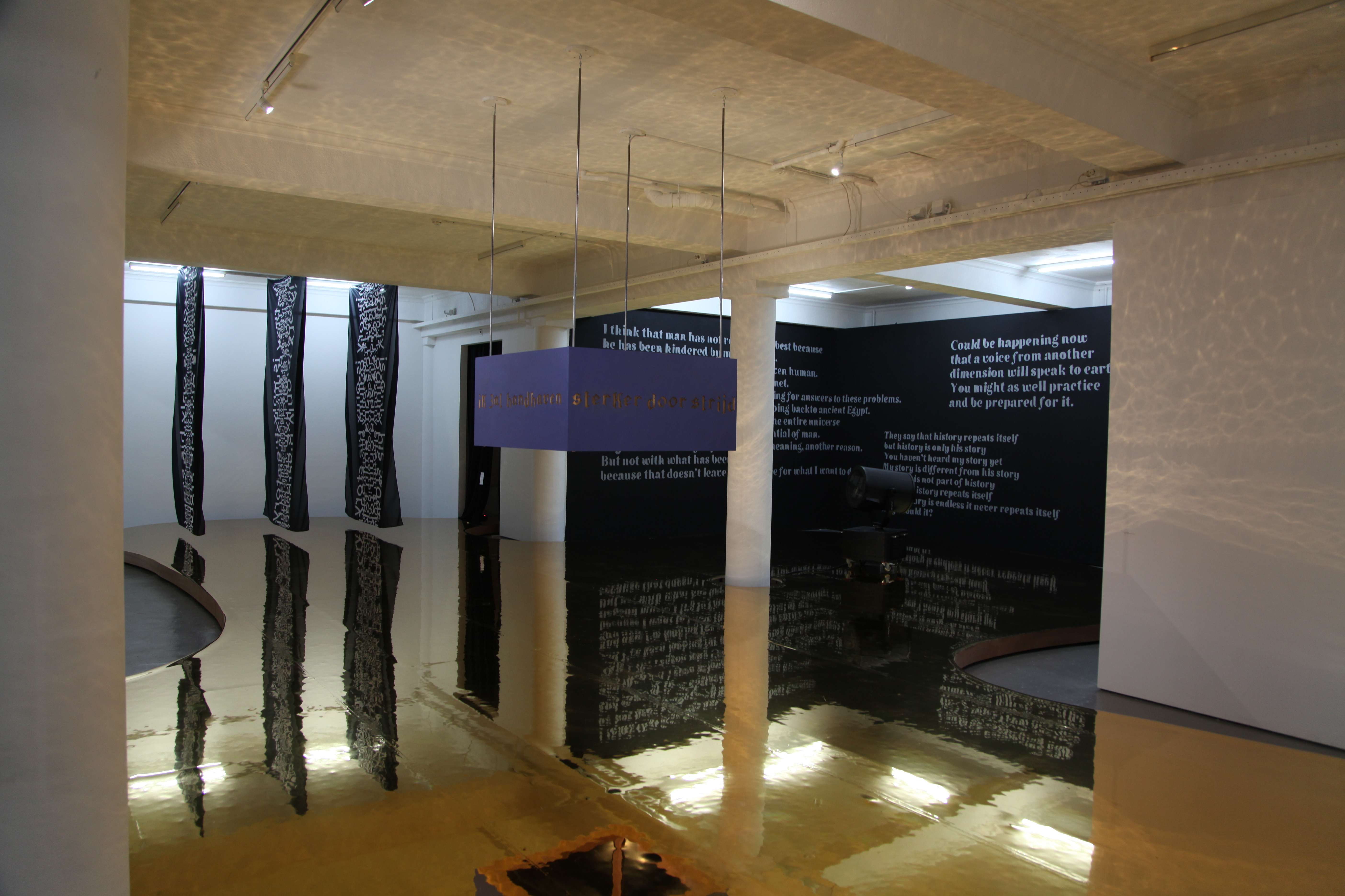 De werken zijn samengebracht binnen een spraakmakend maar ingetogen tentoonstellingsontwerp, dat geïnspireerd is op Sun Ra’s gedachtegoed. Praktisch de hele vloer van de tentoonstellingsruimte is bedekt met een verhoging, een soort podium, die bedekt is met gouden, weerspiegelend folie. Deze ‘zonvlakte’ verwijst naar Sun Ra’s beschrijvingen van Saturnus en biedt de bezoeker een mogelijkheid om afstand te nemen en te reflecteren op zichzelf, de kunst en wellicht zijn leven. En als je dan nadenkt over je leven, probeer het verstand eens los te laten en de grootsheid van het bestaan met je gevoel te begrijpen.