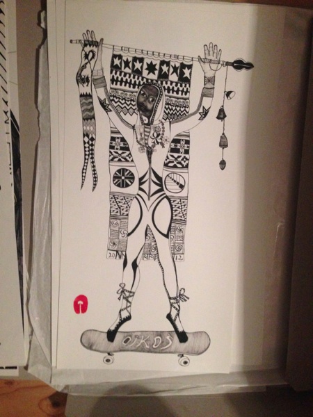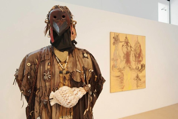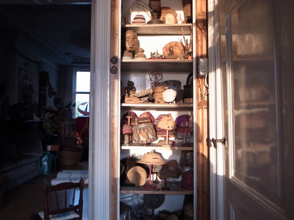 Een week later ben ik op bezoek bij Renate Jacobs. In een kamer vier hoog boven de Amsterdamse Wallen ontmoeten houten beelden van goden, kunstobjecten, kalebassen en struisvogeleieren elkaar en als je je heel stil houdt kun je hun gesprek als het ware opvangen. Draden van verwantschap zijn zichtbaar tussen de etnische objecten en de kunst van Jacobs en haar inmiddels overleden man Raoul Dohmen. Buiten klinken sirenes, het gegil van een alarm, stemmen en een startende scooter. De stad strekt zich loom uit in de warme avondzon. Binnen klinkt de fluitketel en Renate gaat koffie maken terwijl ik kijk en luister naar het gefluister van alles wat hier aanwezig is.