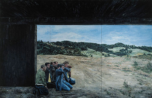 Hoe kunnen we ons verhouden tot de schaduwkanten van de mensheid? Dat is een vraag die Ronald Ophuis (1968) zichzelf dagelijks stelt. Hoe kunnen we omgaan met al het gruwelijke in de wereld? Zijn fascinatie met het kwaad vertaalt hij in expliciete schilderijen. Gebeurtenissen uit verre of voorbije oorlogen vinden zich opeens voor je neus plaats, alsof Ophuis je eraan wil herinneren dat het kwaad, hoe ver weg ook, de wereld nog niet uit is.