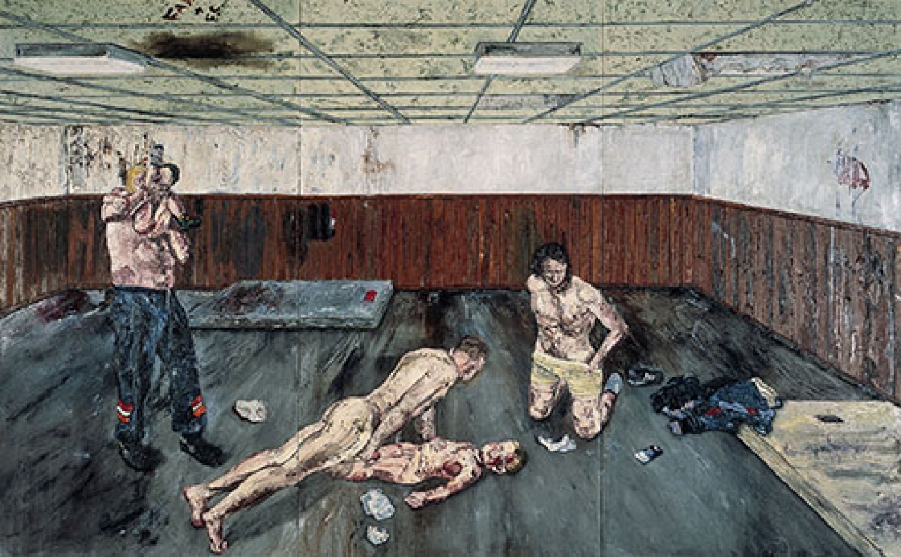 In de verzadigde mediawereld waarin we leven worden we elke dag overspoeld met de meest afstotende afbeeldingen, foto’s en video’s. Tot een paar jaar geleden werden filmpjes over onthoofdingen door de terreurgroep IS massaal gedeeld op social media. Ook het journaal deinst niet terug voor het laten zien van de meest bloederige scenes uit oorlogsgebieden. Welke rol kan schilderkunst nog hebben? Kunnen we nog geschokt zijn door een schilderij of zijn we inmiddels immuun geworden voor het voelen van afschuw? Het verschil met journalistieke afbeeldingen zit hem in de perversiteit van de kunstenaar. We verwachten dat de journalist, zover hij kan, ‘objectief’ is, de werkelijkheid weergeeft zoals hij is. De kunstenaar daarentegen wil dat je het ziet: hij heeft het beeld daadwerkelijk gewild en gecreëerd vanuit het niets. We beschuldigen de kunstenaar van zijn verdorvenheid, zijn gekte, zijn obsessie met geweld, maar als toeschouwer kijk je er net zo goed naar, ben je ook naar de tentoonstelling gegaan en voel je ook het ongemak van het kijken naar iets waar je liever je ogen voor zou sluiten.