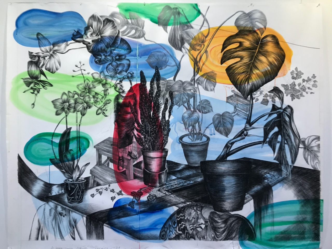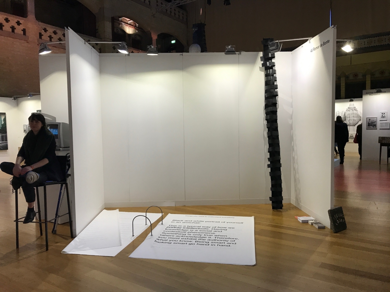 Monique Broekman & Jan van Hees nemen de bezoeker mee op vakantie, en toverden hun stand om in een reconstructie van een plek in de Brabantse bossen gevuld met schilderijen, foto’s en film. In deze groene wildernis is geen prijslijst te vinden maar staat het gesprek over de waarde en de prijs van het kunstwerk centraal. ‘Wat wil jij betalen voor het werk dat je zou willen hebben? Wij kijken of jouw waarde en onze waarde overeenkomen. Zodra onze waardes samen vallen, dan is het werk van jou.’ . Daarnaast, veel dank aan No Man’s Art Gallery voor het tonen van het prachtige werk van Nooshin Askari. Haar tekenachtige schilderwerk in slechts één kleur bleef nog minuten op mijn netvlies staan.