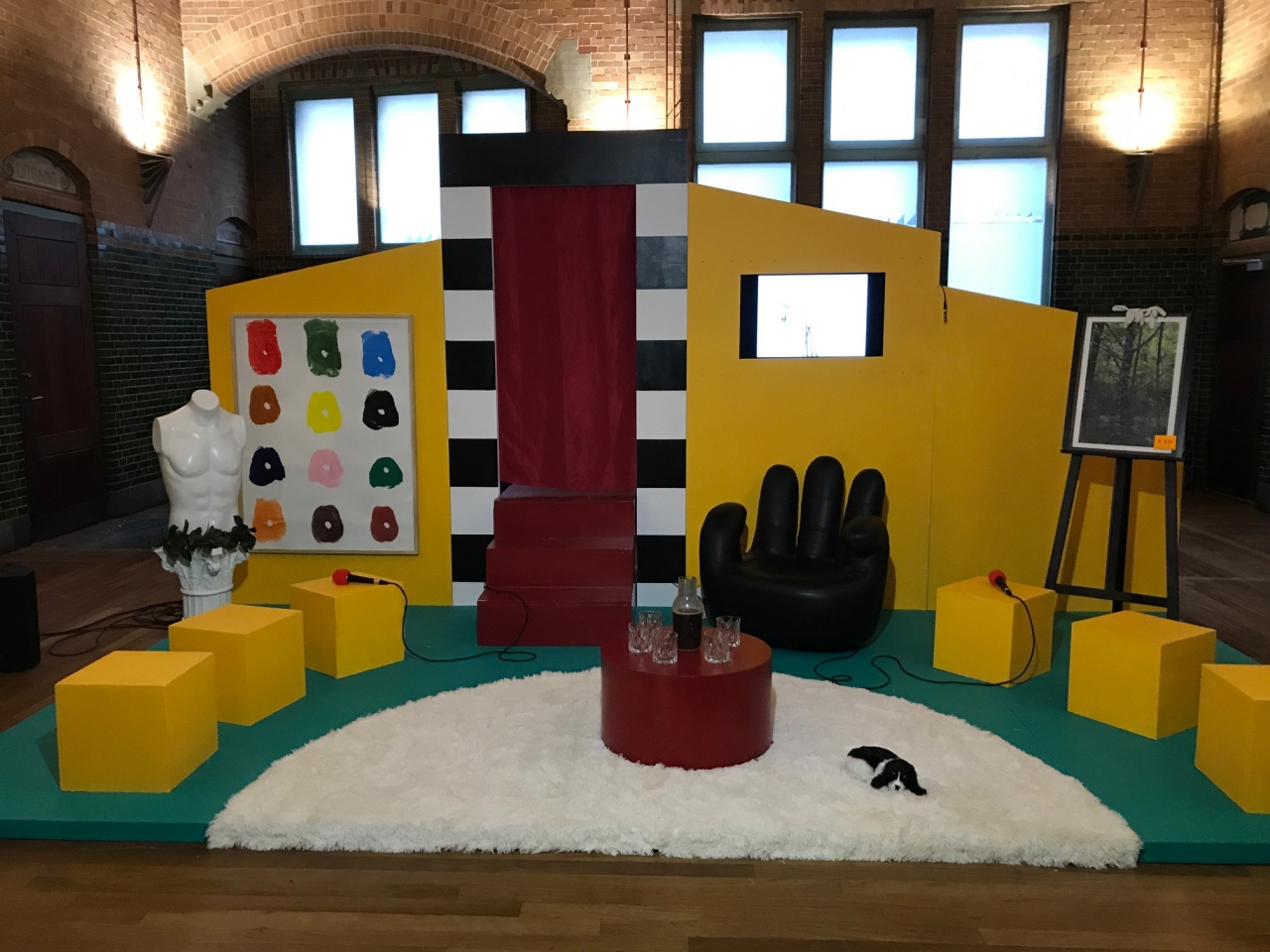 Ondertussen vindt zich in de foyer een performance plaats van Ibelisse Guardia Fellaguti die zich laat inspireren door Boliviaanse volkdans en dit gebruikt als startpunt om de relatie tussen lichaam, dans en beweging te onderzoeken. Maarten Bel maakt een radioprogramma met de naam ‘Tussen Kunst & Kids’ en Anan Striker draait tapes te midden van een installatie bestaande uit enorme tekeningen, decoratiemateriaal uit een friettent en kunsstof barriere blokken waarin hij verkondigt dat Ajax Art is.