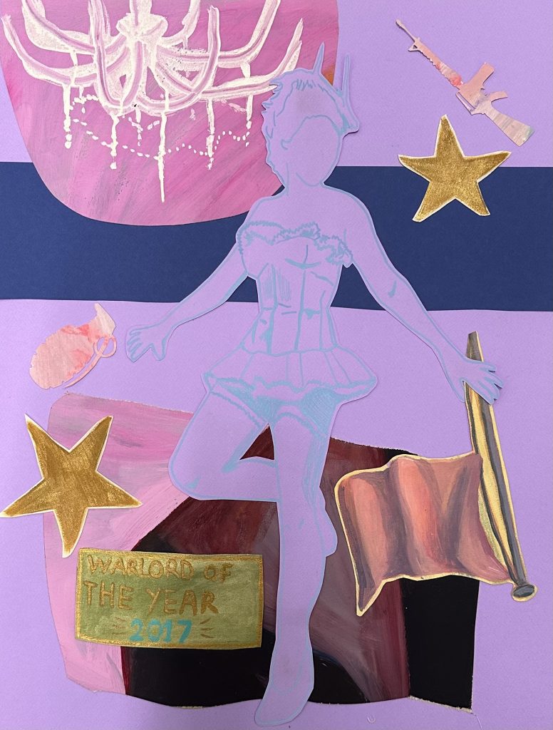 Deze week is Elma Čavčić te gast bij Kunst is Lang. In de schilderijen en collages van Elma is de Bosnische burgeroorlog uit jaren ‘90 altijd aanwezig. Soms op de voorgrond, in de vorm van geweren of silhouetten van soldaten, soms in verhulde, sluimerende vorm op de achtergrond, wanneer je op het eerste gezicht een zorgeloze familiepicknick bij een rivier ziet afgebeeld – totdat je ziet dat de lichamen in het water niet zwemmen maar drijven.