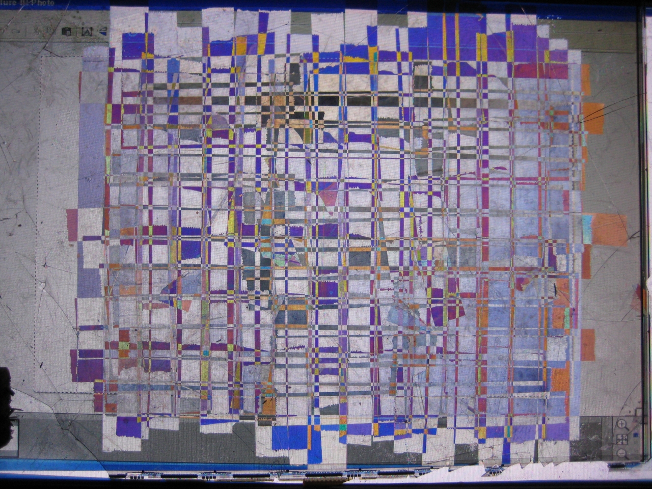 Jan Vos merkte werkend met zijn computer dat hij op het beeldscherm een streepje achterliet als hij er met zijn vinger overheen ging, dat dan vervolgens weer verdween. Hij probeerde dat met zijn nagel, met een balpen en ten slotte met een stanleymes; dan moest het beeldscherm er maar aan om te ontdekken wat dit te betekenen had. Hij sneed er een stukje uit, waar dan een witte plek ontstond. Als hij het stukje terugplaatste en vastplakte ontstonden er in die ruimte en op dat plakband allerlei kleurverschijnselen. Hij begon met een boormachine gaten in het beeldscherm te maken waardoor er een vuurwerk van kleuren en vormen als beeld verscheen. Hij merkte dat hij met een kleiner boortje een bepaalde lijn en kleur tot stand kon brengen, maar hij had er te weinig controle over om het tot een beklijvend beeld te maken. Dat kreeg hij alleen voor elkaar door tijdens het proces er foto’s van te maken. De beeldschermen werden wrakken die interessanter beeld opleverden dan het oorspronkelijke apparaat.
