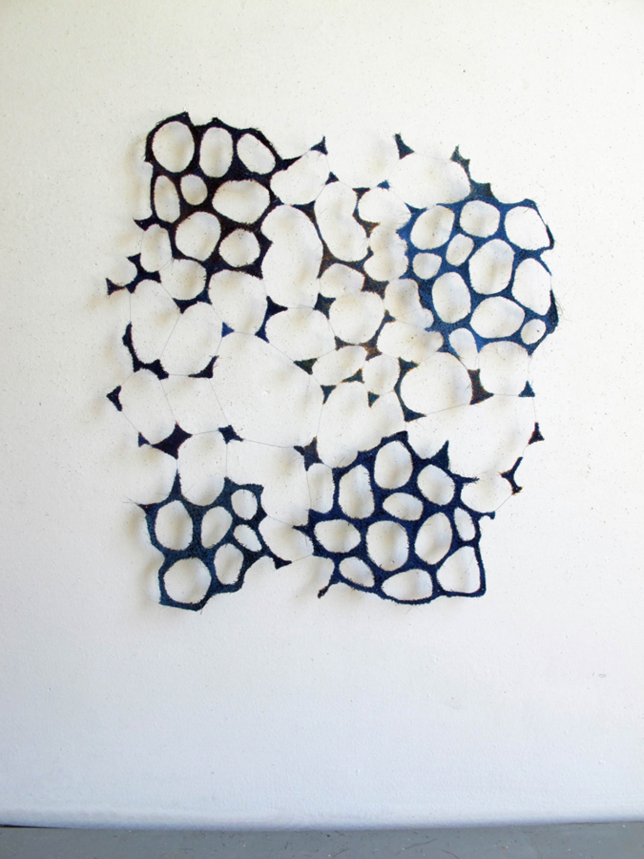 Marian Bijlenga heeft een bijzonder oog voor eigenaardige patronen die je niet kunt voorzien. Bij geluidsschermen langs de snelweg ziet ze op het beton een ritmiek van strepen achtergelaten door het gewas dat ervoor is geplant en die er door de wind heen en weer bewogen slijtplekken in maakt. Als kind volgde ze een opleiding tot imker en was toen al gefascineerd door de wetmatigheden van de raten in de bijenkas en hoe die ook weer ontaarden in mutaties en verrassende afwijkingen. Die organische structuren hebben door hun esthetische volmaaktheid een uitzonderlijke aantrekkingskracht, die in haar geval nog eens wordt versterkt door de onvermijdelijke ontregeling van die perfectie.