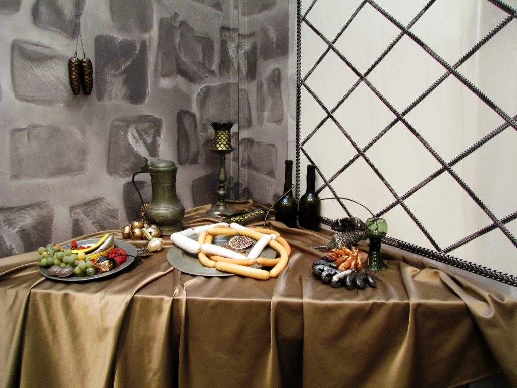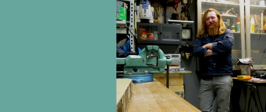 Ik bekijk het rariteitenkabinet van Kees Boevé; een futuristisch goud met zwart masker, geborduurd schilderijtje, grote witte robot, opgezette fazant…