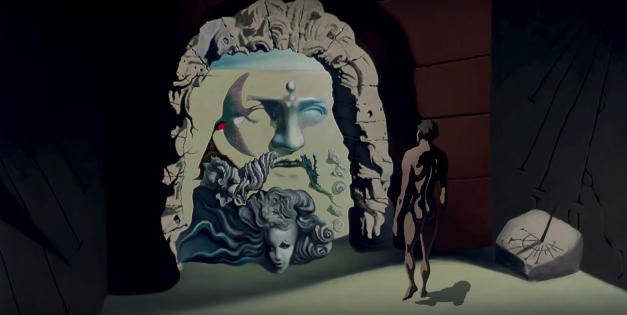 De twee figuren van Chronos en de vrouw bewegen zich veelal individueel van elkaar door het karakteriserende Dali decor. Zo wandelt de vrouw over het schilderij The Broken Bridge and the Dream, waar ook haar sierlijke dansbewegingen in terug te vinden zijn, en zijn vanaf minuut 3:50 de grote hoeveelheid fietsende Fransmannen met broden op hun hoofd te herkennen uit Study for Sentimental Colloquy. En dan hebben we nog niet eens gesproken over de typerende manier waarop het gezicht van Chronos wordt gevormd in minuut 4:50: doormiddel van verschillende objecten en de vrouw zelf, wordt in perspectief zijn gezicht zichtbaar. Maar Dali maakte ook veel nieuw werk voor deze film. Na het einde van de tweede wereldoorlog in 1945 werd er een start gemaakt. In een periode van acht maanden, waarin Dali in de Disney Studio’s aanwezig was, werd er dagelijks gewerkt aan het beeldmateriaal. Maar na deze periode werd de productie stilgezet. Financiële problemen, die het gevolg waren van de tweede wereldoorlog, boden de film geen kans meer. Er werd geprobeerd de schetsen die er waren te verwerken in een korte animatie, maar ook dat mocht niet baten. Er was geen geld, en geen belangstelling van Disney meer.