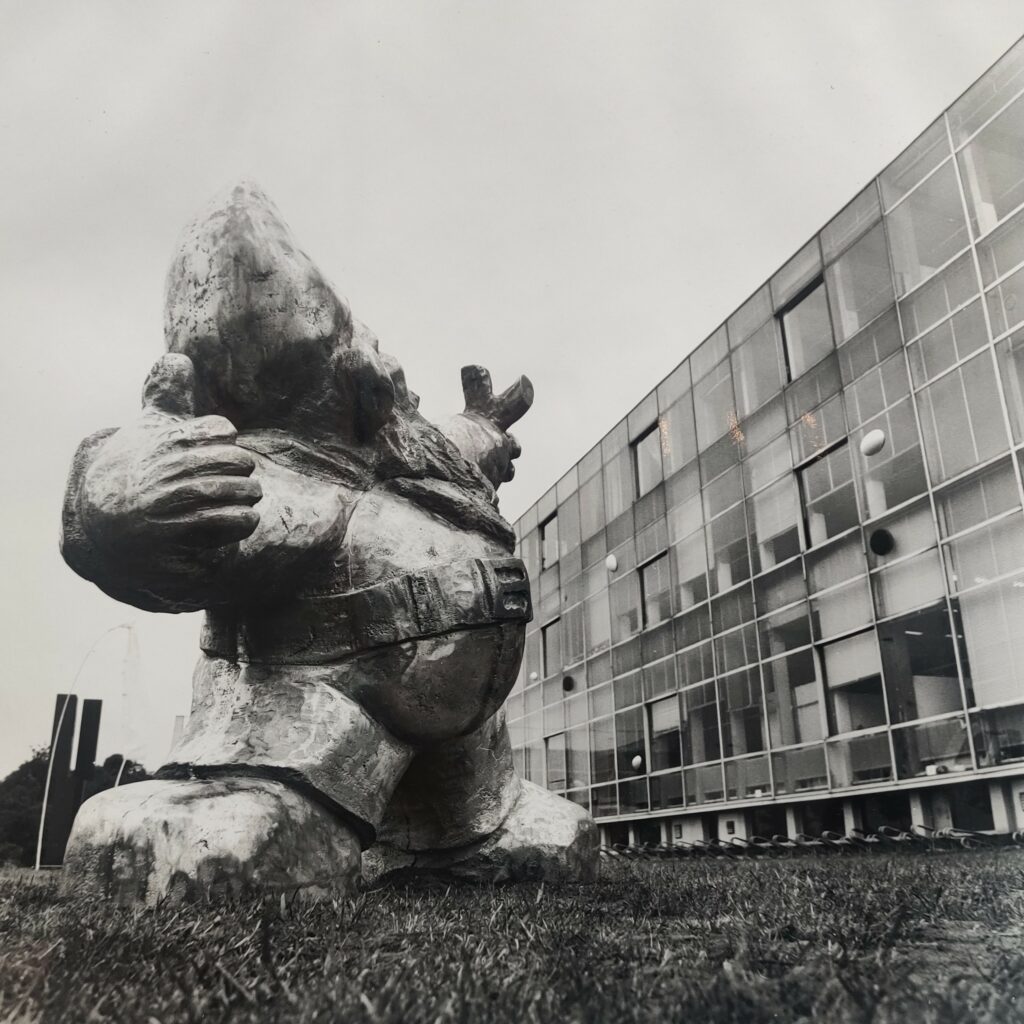 Ik leefde op als er gastdocenten kwamen, zoals John Körmeling die aantoonde dat je als enfant terrible ook een succesvolle beroepspraktijk kon hebben. Ik ben niet bepaald cum laude afgestudeerd, maar ik presenteerde zo’n zeven verschillende werken in allerlei materialen en technieken om mijn veelzijdigheid te laten zien. Wie en wat ik wilde zijn in de beeldhouwkunst wist ik nog niet. Na het eindexamen meldde ik me bij de Sociale Dienst voor een uitkering die ik na een half jaar kreeg toegewezen, maar daar wilde ik zo snel mogelijk weer uit. Ik heb me na nog een half jaar als zelfstandig ondernemer gevestigd. Ik schreef in op de opdrachten die in BK-Informatie werden geadverteerd en slaagde erin.