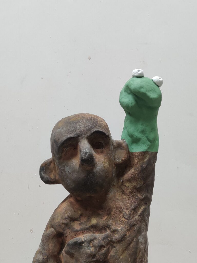 Als er iemand in de kunst is die met beide benen op de grond staat is het wel Erik Buijs. Met die grondhouding is hij een stabiele aanwezigheid in de Nederlandse beeldhouwkunst met herkenbare, direct aansprekende beelden die gegeven situaties bevragen en met hun verrassende aanwezigheid verwondering oproepen. Het mannetje dat in zijn werk in de meest uiteenlopende gedaanten terugkeert, vormt hij steeds weer tot een onmiskenbare buitenstaander die min of meer stampvoetend zijn inzichten kenbaar maakt. Alex de Vries bezocht het atelier van Erik.