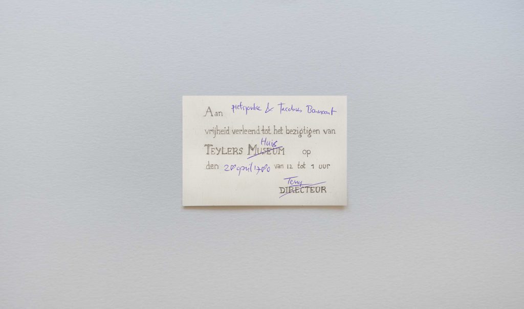 Kunstenaar pietsjanke fokkema schrijft elke twee maanden een brief aan het oudste museum van Nederland: Teylers Museum. Brief 3 is aan Jacobus Barnaart gericht, een van de vijf eerste directeuren van de Teylers Stichting.