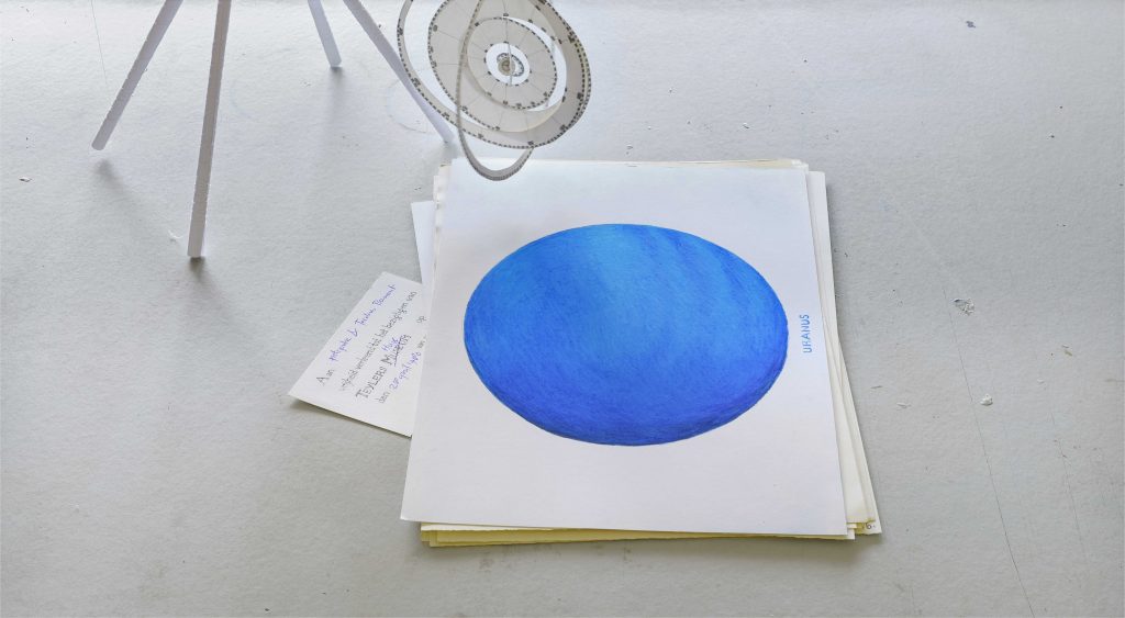 De grenzen van het door ons gekende zonnestelsel worden opgerekt. Ziehier welke bewegingen er gaande zijn. Je hebt deze ontdekking van een nieuwe planeet net niet meer mee gemaakt. Ik heb Uranus voor je getekend, omdat ik het mooi vind passen bij de komende veranderingen.
