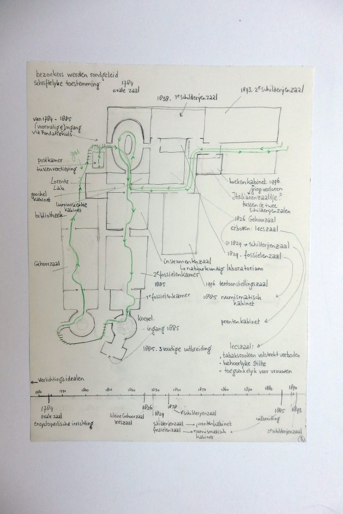 Naast de brief heeft fokkema een plattegrond getekend van het museum: met postkamer. Ook heeft ze een schema ontworpen waarin ze relaties legt tussen haar eigen achtergrond, het museum, Van Druten en tijden en plekken die daaraan verbonden zijn. De tekeningen stellen haar als kunstenaar in staat om orde te scheppen in de chaos van indrukken die dit eerste bezoek haar hebben opgeleverd.