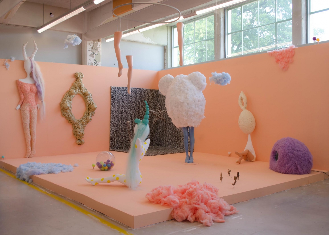“My puppets are a joyful celebration of extravagantness and unapologetically happiness. Beside that they are also a little shy.. All of them are restricted in some way. They may not have arms to wave with or eyes to look trough, but they are okay with that. They are here to celebrate fluffiness. At very special times, they may even come alive…. “