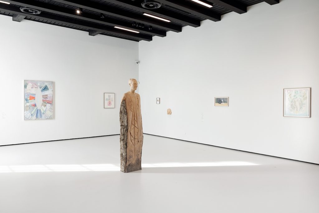 We lopen verder, langs een reeks werken die telkens weer verrassen, bevreemden, en een zekere zachtheid uitstralen. Het vrouwelijk lichaam, omringd door planten en bloemen; een intiem portret van een slapend kindje; talloze ovaalvormen die overduidelijk de vulva en vruchtbaarheid symboliseren, en een portret van een huilende vrouw – alleen huilt ze geen tranen, maar tongen.