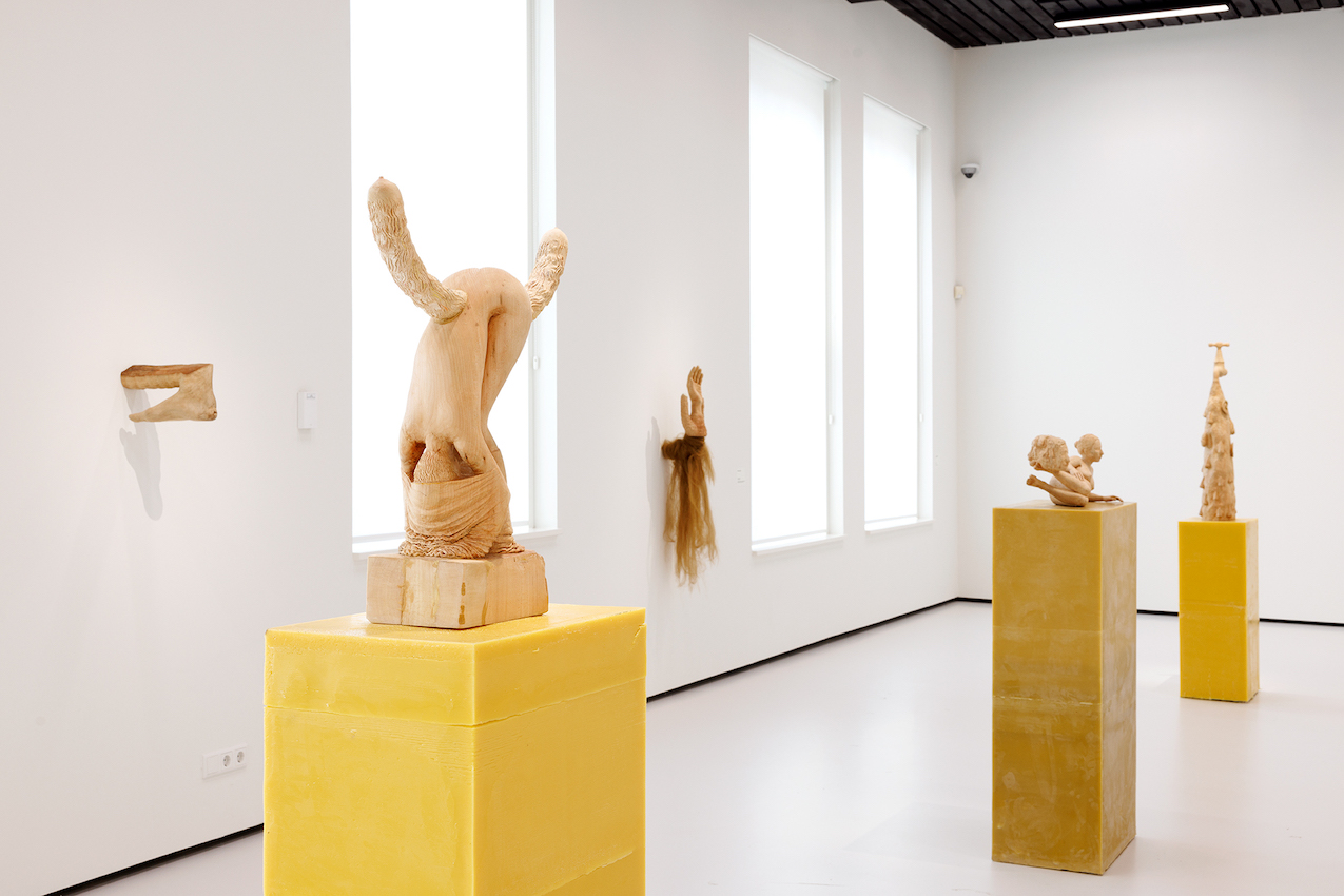 Laat ik meteen iets bekennen: ik voel mij persoonlijk meer op mijn gemak in een felle politieke discussie dan in een intiem, kwetsbaar gesprek. En hoezeer ik het ook toejuich dat we als samenleving niet al te preuts zijn, persoonlijk vind ik het al te veel gevraagd om naar een sauna te gaan, met al die lichamen om me heen. Dus daar sta ik dan, omringd door sculpturen en tekeningen van vulva’s, tongen, penissen en zwangere buiken. Om het mezelf nog iets moeilijker te maken, heb ik juist deze tentoonstelling uitgekozen om met een willekeurige bezoeker te bekijken.