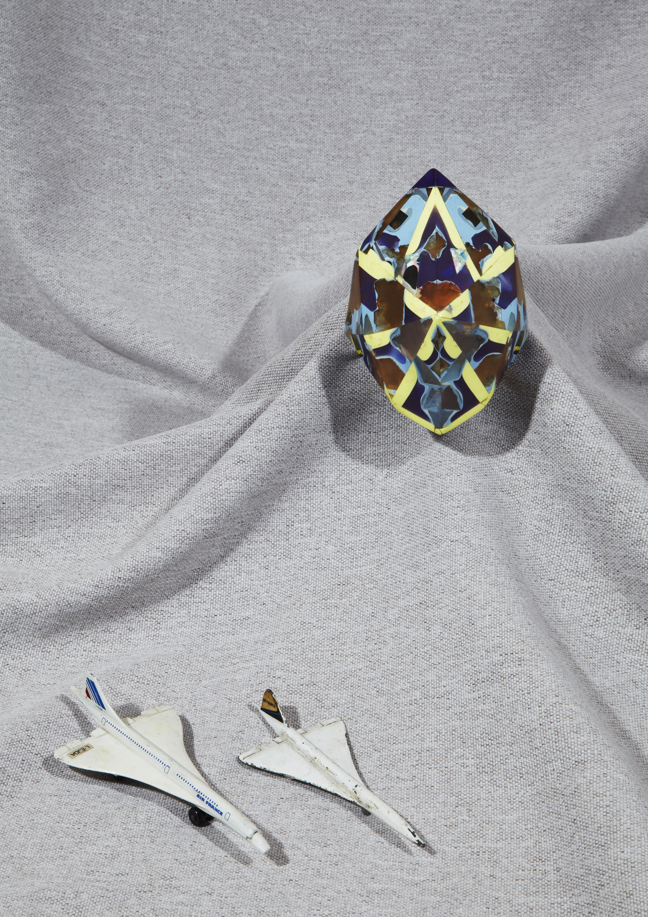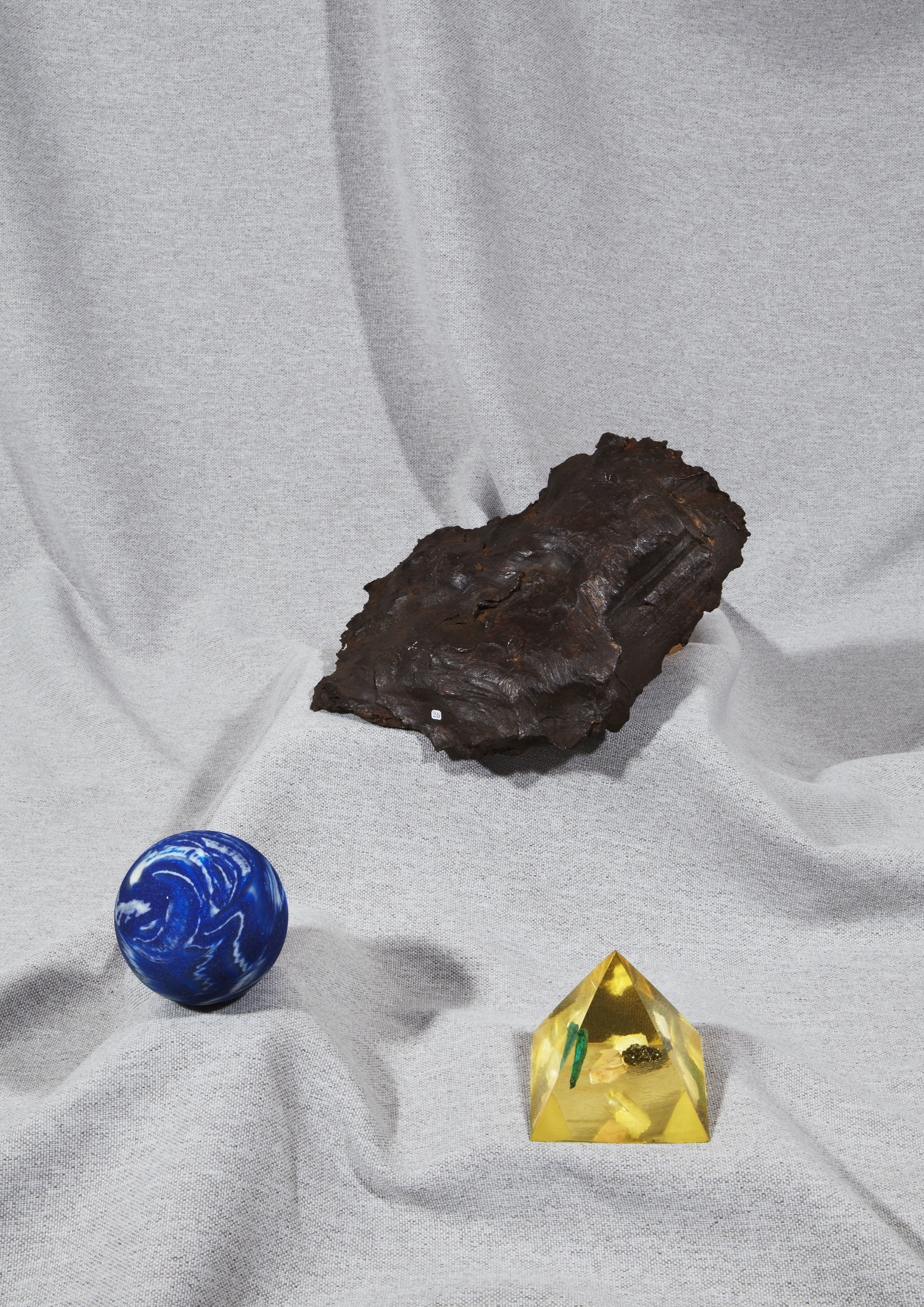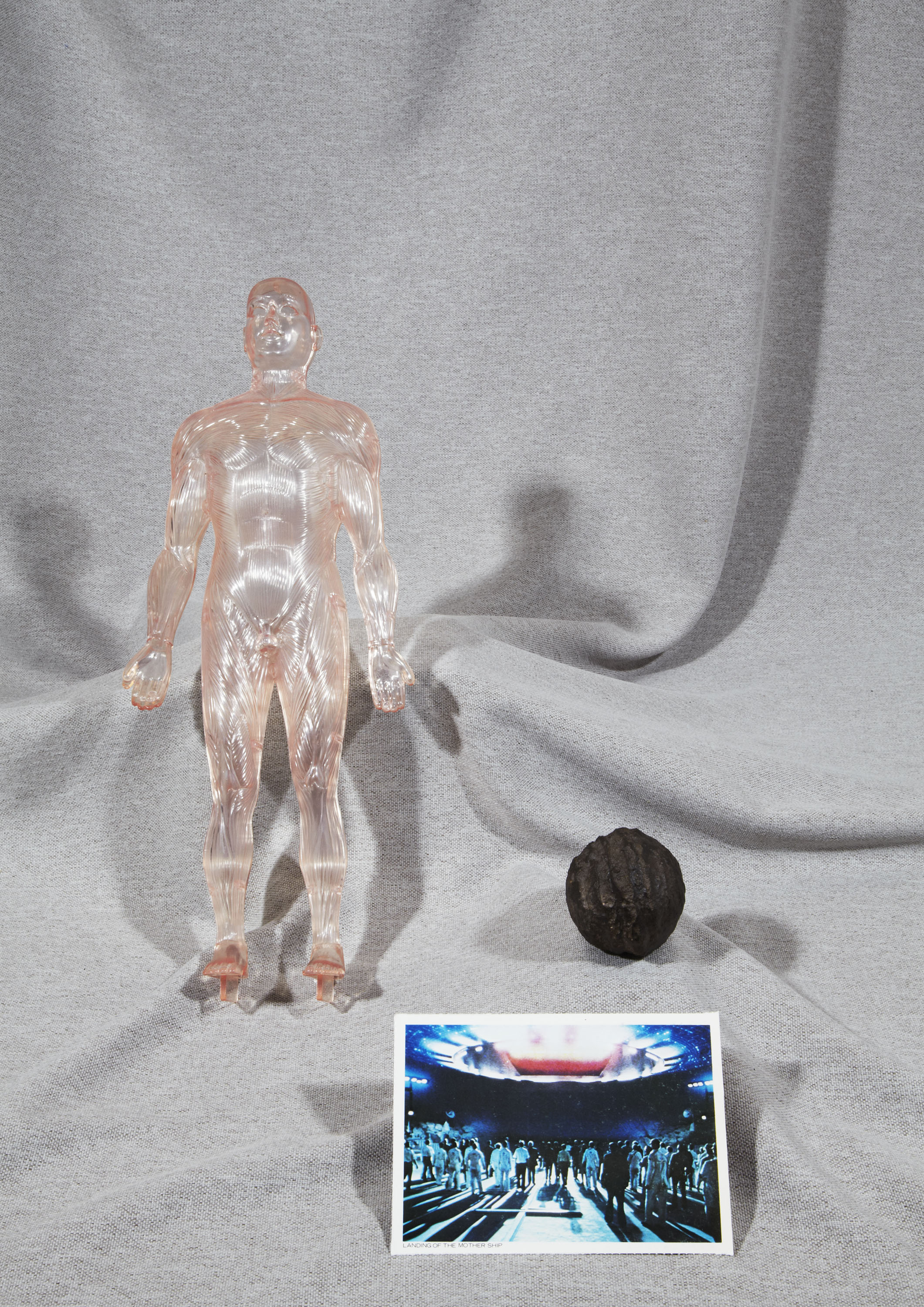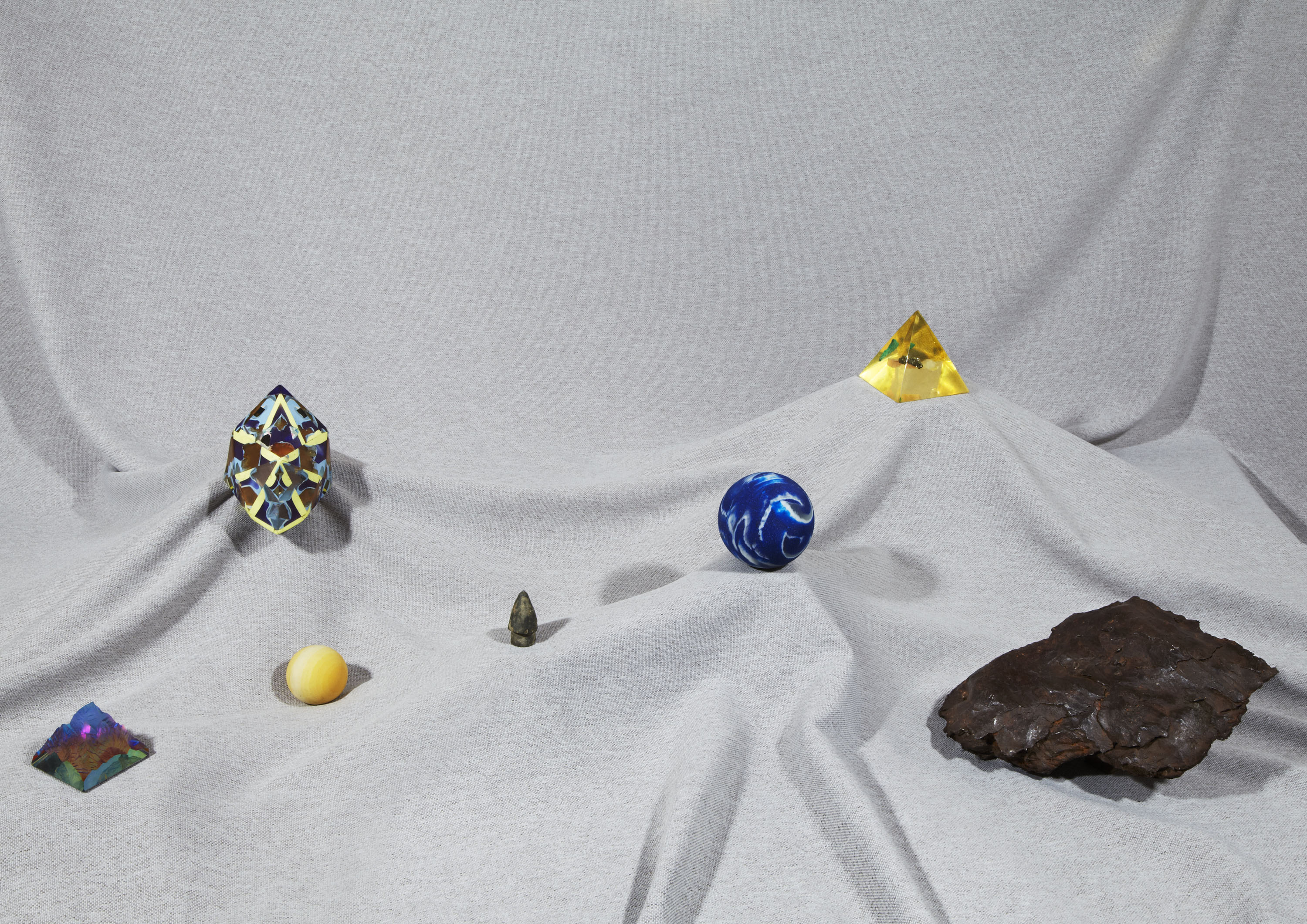 Normaliter moet ik gasten die bij mij thuis komen er van overtuigen dat het stuk roest dat ik ze in hun hand duw al miljoen, misschien wel miljarden jaren door de ruimte gezweefd voordat het met ongekende kracht en geweld op de aarde terecht is gekomen. De reacties daarop zijn naar mijn mening wat aan de bescheiden kant. Een stukje uit de oneindigheid waarvan niemand weet waar het vandaan is gekomen of hoe het er daar uitzag: Wie zal het weten? Ik mag daar zelf graag over fantaseren. Ik heb er voor gekozen om niet enkel ruimte objecten te laten zien, maar juist een gevarieerd overzicht van objecten waar ik mij dagelijks in mijn slaap- en woonkamer mee omring. Deze objecten vormen bron van inspiratie voor het werk dat ik doe als vormgever, vandaar dat ik ze heel dichtbij me houd. Van sommige objecten die ik voor Mister Motley heb uitgekozen geloof ik zelfs dat ze bepaalde krachten hebben, terwijl ik doorgaans niet geloof dat een stukje kristal om je nek dragen kan helpen bij het overwinnen van een hernia. De krachten waar ik het over heb, heb ik zelf aan ze toegekend. Meestal vanwege het bijzondere verhaal dat er achter schuilt, de vreemde plek waar ik ze gevonden heb, of de vreemde functie die ze ooit misschien hebben vervuld. In de selectie vind je o.a: een groot stuk meteoriet uit Rusland genaamd ‘Sikhote Alin’, Een antiek boek over ruimtevaarttechnologie afkomstig uit Duitsland, maar van ver vòòr de tijd dat ruimtevaart mogelijk werd, een blikken maanglobe die tijdens de koude oorlog vaak op de bureaus van wereldleiders te vinden was, medisch gereedschap, 2 zelfgemaakte objecten en een piramide vormige presse-papier met kristallen er in. met dank aan Ninette Schostack Photography & Terra Incognita Amsterdam.