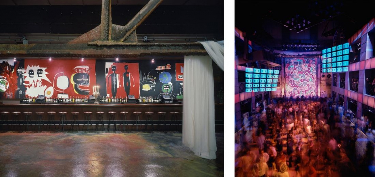 Toen het door de Japanse architect Arata Isozaki ontworpen Palladium haar deuren in 1985 opende in New York was een bijna 10 meter hoge muurschildering van Keith Haring het decor van de drukbezochte new wave – en later house – avonden. Haring ontwierp tevens de flyers voor de nachtclub aan East 14th Street. Aan de langgestrekte bar konden bezoekers zich vergapen aan een muurschildering van Jean-Michel Basquiat. Net als Nan Goldin waren beide kunstenaars kind aan huis bij The Mudd Club waar Basquiat platen draaide en Haring op de vierde verdieping een ‘late-night gallery’ opende. De jaren tachtig in New York waren een belangrijke tijd voor de kruisbestuiving tussen het nachtleven en de kunst waarin de nadruk lag op cross-media, experiment en een DIY mentaliteit. Naast het tekort aan tentoonstellingsruimtes leek de kunstwereld- die vooral werk van gevestigde kunstenaars toonde – onbereikbaar en ontoegankelijk voor jonge kunstenaars. En dus vonden ze hun weg naar alternatieve ruimtes en nachtclubs.