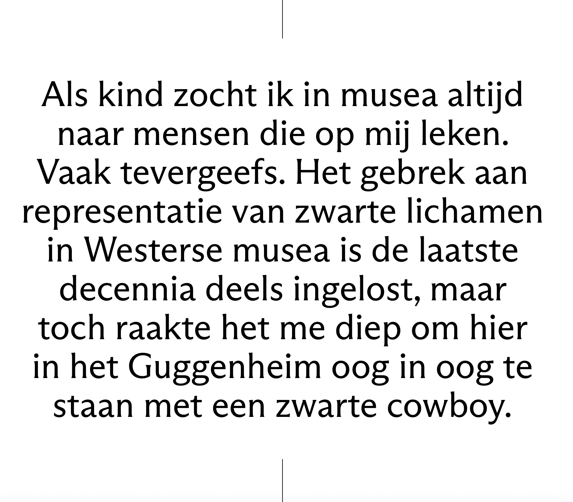 Sophia Blyden denkt terug aan die zinderend hete zomer die ze in 2022 in Baskenland doorbracht. In de gekoelde ruimtes van het Guggenheim in Bilbao komt ze oog in oog te staan met de zwarte cowboy Blue. Het raakt haar diep.