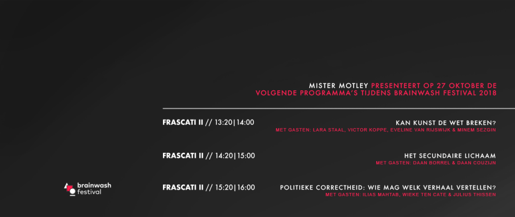Mister Motley nodigt op zaterdag 27 oktober in Amsterdam tijdens Brainwash festival kunstenaars, wetenschappers en denkers uit om tijdgeestverschijnselen vanuit hun…