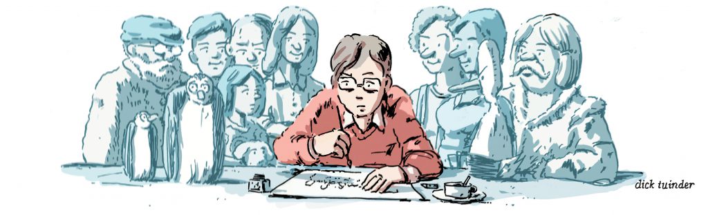 *In 2023-2024 publiceerden we 312 nieuwe artikelen van 97 verschillende auteurs, van wie er 18 onder begeleiding debuteerden, bijna 100 podcastafleveringen, 17 langlopende samenwerkingen, een lessenreeks, zaalprogramma en online events. Het archief bevat meer dan 3.500 artikelen, interviews en podcasts, vrij toegankelijk.