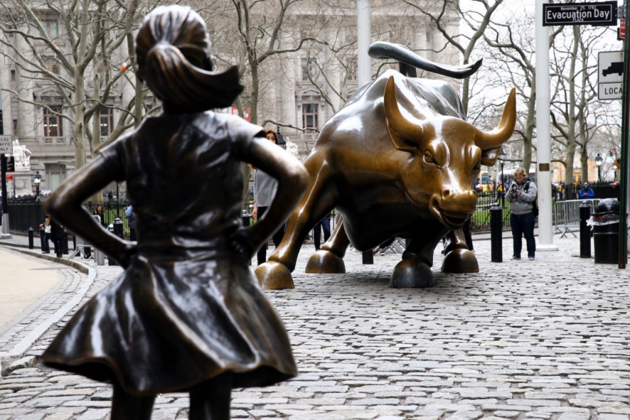 Het beeld van de Charging Bull of Wall Street in New York – is toch kleiner dan voorgesteld. Hoe langer ik naar het beeld kijk, hoe kleiner het lijkt te worden. Komt het door de financiële crisis – veroorzaakt door de speculerende testosteronbommen in streepjespakken? Wellicht komt het door de Fearless Girl: het veel minder bekende beeld van een vastberaden meisje dat de stier onverschrokken aankijkt.
