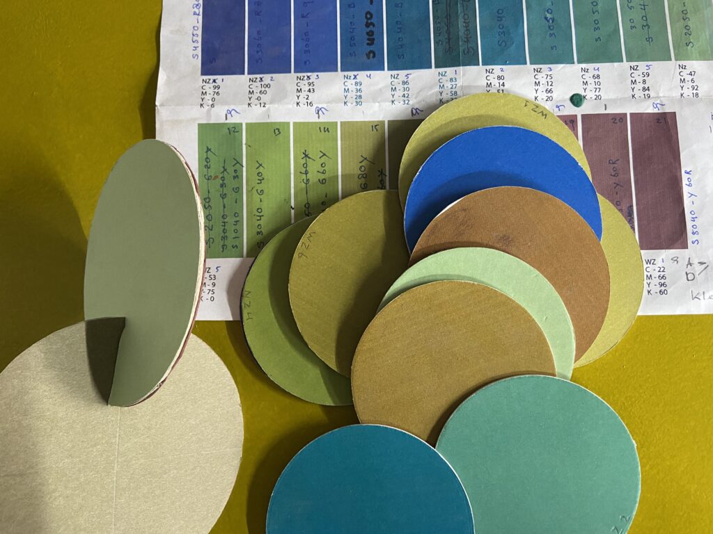 Straks op het atelier zal ik de schijven verven in de kleuren van Forel Ule. De ene schijf in de kleur van de Noordzee, de andere in de kleur van de Waddenzee. Als paar wisselen de kleuren zich af.