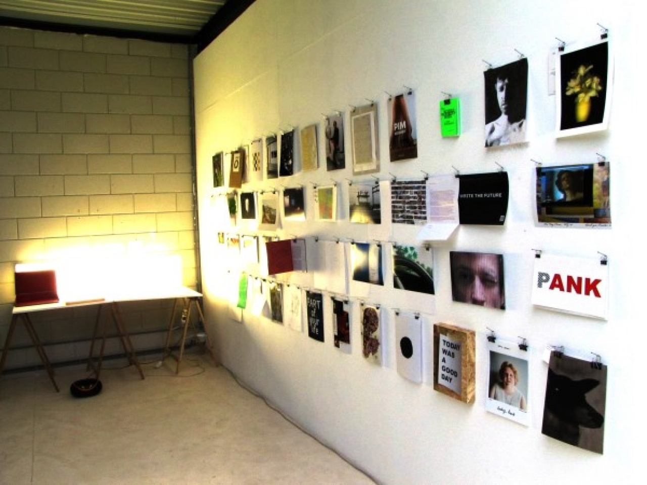 De andere presentatie heet ‘Voor Pim Trooster’. Buiten zijn weten om, zijn een aantal oud-exposanten benaderd om een dankbetuiging voor Pim Trooster te maken, dat zich op één A4’tje moet afspelen. Dit resulteerde in een tentoonstellingsmuur met een zeer uiteenlopende verzameling van tekeningen, foto’s, teksten, collages en andere bijdragen. Een overweldigende expositie, waaruit direct een gemis blijkt. Zo ontving hij ‘Het Scheldwoordenboek voor Kunstenaars’, een ‘Thank Word’ van Kim Habers, een lijnen tekening van Sonia Rijnhout, een polaroid foto van Wouter Jansen en een dankwoord met foto’s van Pim in de installatie ‘Mijn eerste treinreis’ van Arjen Boerstra. De berichten betreuren het feit dat er een einde komt aan het initiatief, maar stralen ook een enorme trots uit. Ze vieren zege op de mooie tijd waarin al deze tentoonstellingen plaats hebben gevonden.
