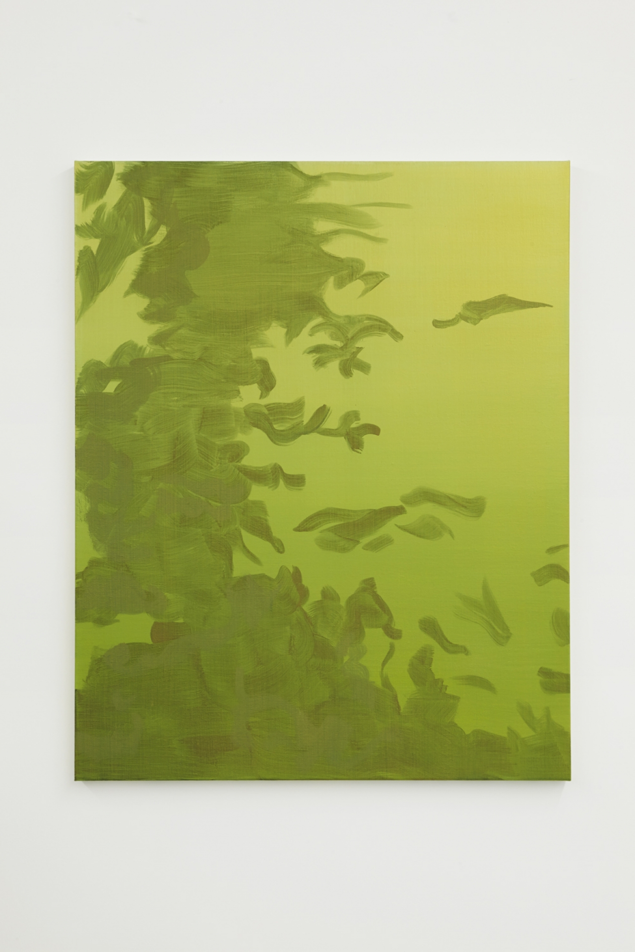 In haar galerie Tegenbosch van Vreden keek ik intens naar haar schilderijen. Gouden strepen vallen naar beneden tegen een roze achtergrond. Het lijken aren, grashalmen. Het is moeilijk te accepteren dat het gewoon verf is, een sensatie, want je bent er zo aan gewend om er een voorstelling in te projecteren. Streken en vegen van goud die aan de bovenkant van het werk een leegte achterlaten. Dan kijk ik naar het groen van een diepzee, alles beweegt zachtjes heen en weer, lijkt het, een streng groene waterplanten waar stukjes van loslaten die langzaam wegdrijven. Roze mengt zich met groen. Alles is stil en alles beweegt. Verf.