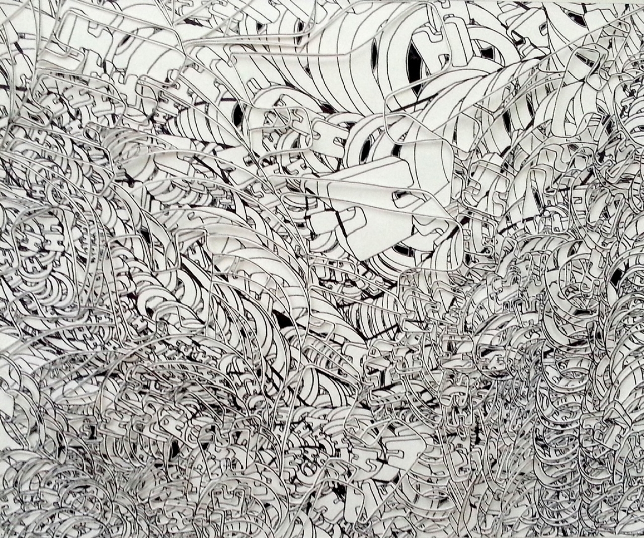 Wat zien we als we naar het werk van deze kunstenaars kijken? Bij Alicja Werbachowska is er meteen sprake van een veld zoals hierboven aan de orde is gesteld. Hoe concreet haar tekeningen ook zijn, je ziet vooral een schijngestalte van de begrippen eenvoud en minimalisme die onmiddellijk bij je opkomen. Als je aan de eerste indruk voorbij gaat, zie je vooral complexiteit van denken, varianten, afwijkingen, composities die scheef en scheluw zijn, rationaliteit die vooral blijk geeft van een gevoelsmatige benadering van de opgave die de kunstenaar zich stelt. Je ziet in ieder werk de mogelijke uitkomst van een parallelle vraagstelling die ermee wordt opgeroepen. Ieder werk kent een afwijkende ontwikkeling die inherent is aan een interne logica die wordt ondermijnd door een onverwachte mutatie van binnenuit. Werbachowska probeert daarmee in de tekening in het reine te komen. Vanuit een zuiver voornemen doet zich een vervreemding voor die onderdeel uit moet gaan maken van dat oorspronkelijke idee, juist door ervan af te wijken.