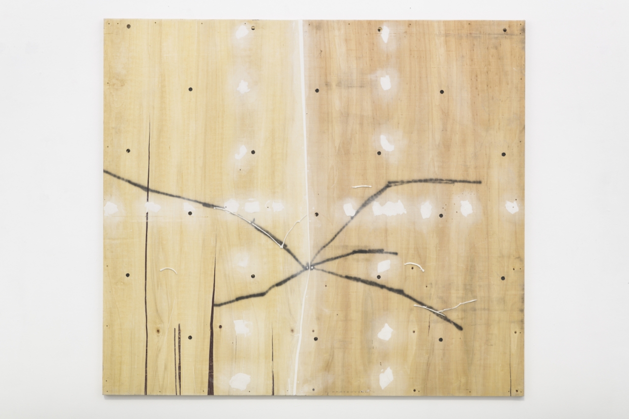 ‘’Ik denk dat ik het daar mee eens ben. In sommige schilderijen van mij is vrijwel geen verf gebruikt. Bijvoorbeeld een serie van houten panelen die ik vorig jaar maakte waarbij maar heel af en toe verf komt kijken. Toch ligt de manier hoe ik over dat beeld nadenk, dat het voortkomt uit het kijken, dichter bij het schilderen dan letterlijk de handeling van verf aanbrengen op een doek. ‘’