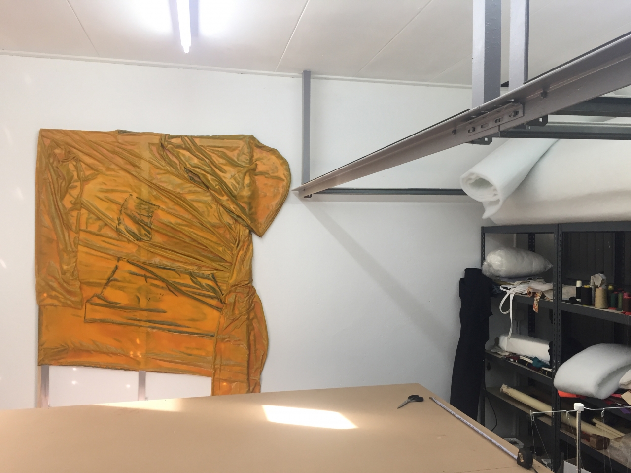 ‘Ik ben bang voor mezelf, niet voor de mening van anderen. Textiel is gewoon een beetje lullig spul, zo een truttige lap stof. Mensen hebben de associatie met huismoeders. Ze vinden dat ik lijk op een vrouw die de hele dag strikken naait en op doeken zit te spelden.’