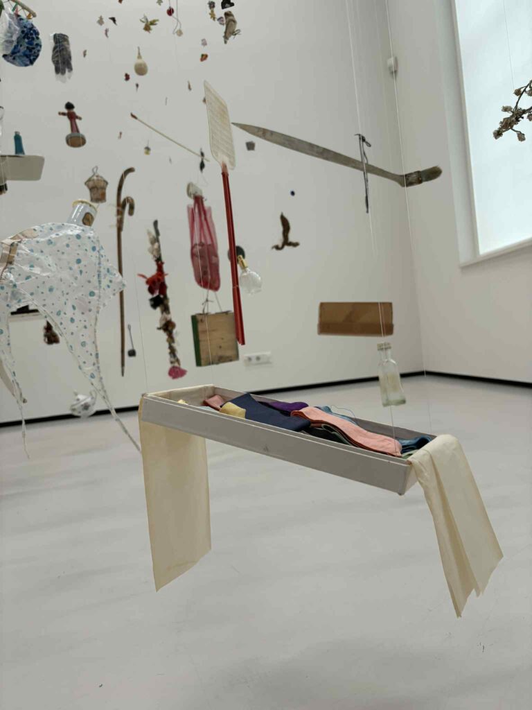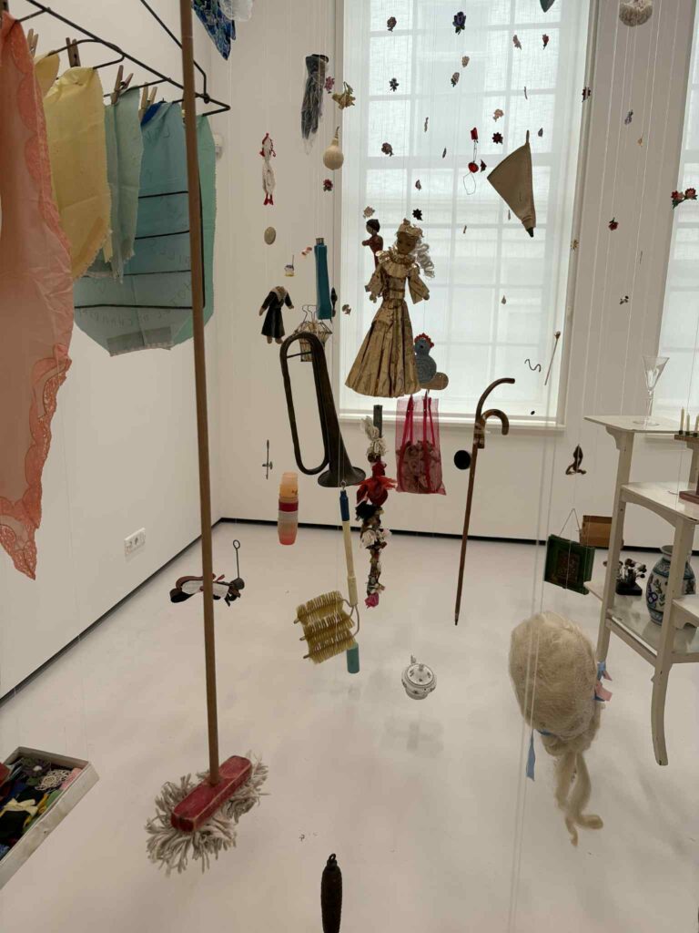 Die delicate hand werd voor mij onontkoombaar in The Survival of the Faintest van Doina Kraal. Nadat haar oma Lola overleed, hing Kraal een groot aantal van haar spulletjes aan visdraadjes zodat ze konden zweven in de lucht. Het resultaat maakte jaloezie bij me los. Het deed me mijn eigen oma missen en me afvragen waar haar naaispullen zijn, haar krulspelden en koektrommel, hoe we zo onzorgvuldig hebben kunnen zijn ze te laten oplossen in het niets en alleen haar sieraden hebben bewaard, haar serviezen.