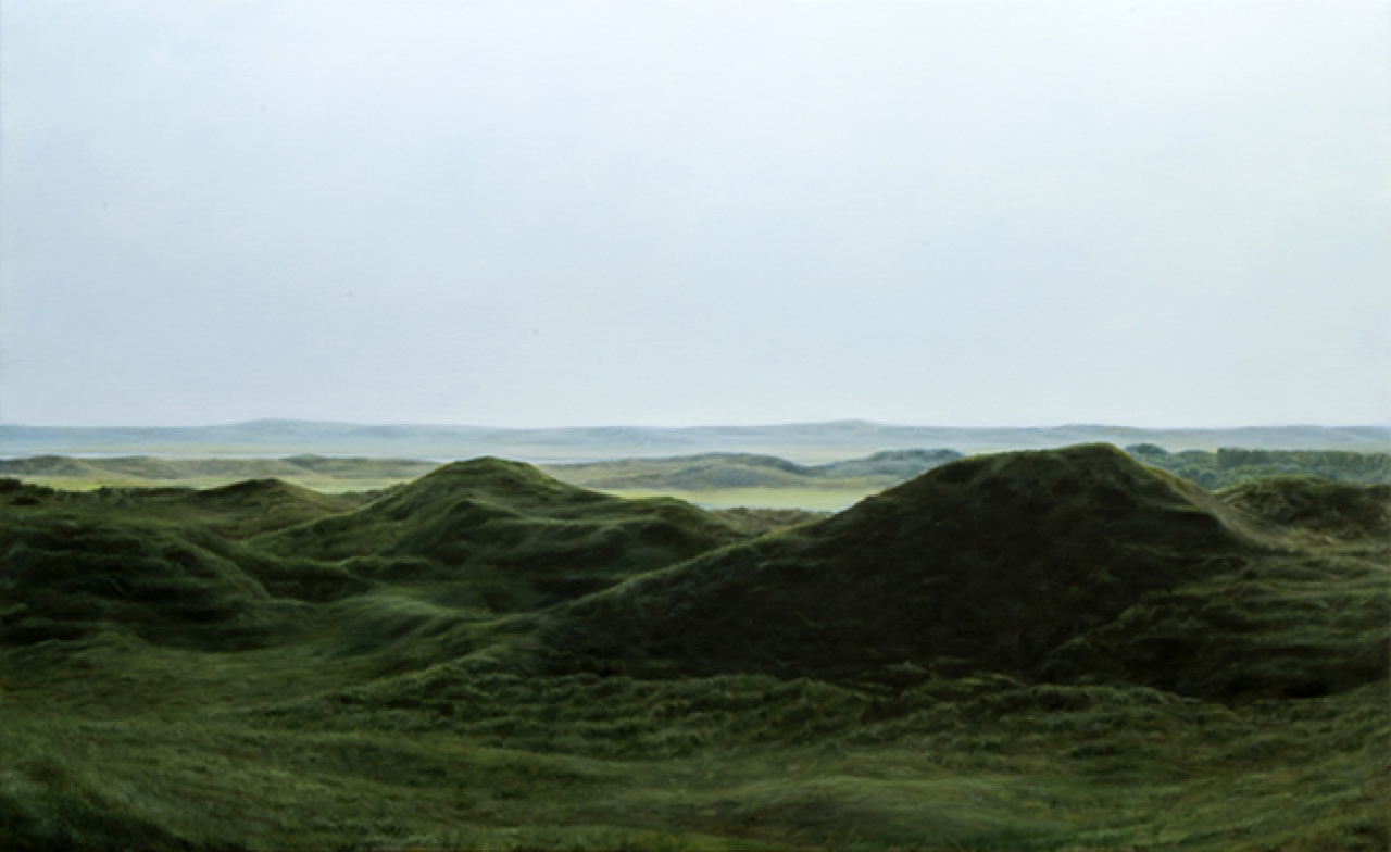 Killian gaat hier op een buitengewone manier mee om. In zijn werk lijkt alles te kloppen maar toch is het perspectief vaak afwijkend waardoor je blijft kijken. Hij schildert de bizarre utopische behoeften van de mens die alles wil en kan vormgeven naar zijn hand. Neem als voorbeeld het kunstmatige licht dat valt op het bedwongen karakter van de duinenpartij of de strak aangelegde struiken bij een bungalow in de nacht die het handelen van de mens weergeeft. Hier komt zijn oude jeugdheld Edward Hopper in naar voren. De realist die als geen ander wist hoe hij de realiteit op een psychologisch spanningsveld kon laten balanceren met een fictieve wereld. Hij zei daarover: “If you could say it in words there would be no reason to paint.” Eigenlijk is Hopper een voorloper op zijn tijd. De games die we nu spelen waarin we een avatar van onszelf zijn geworden, voorspelde Hopper in zijn schilderkunst. De werken van Hopper en die van Killian zijn een spiegel op het menselijk gedrag, onze dagelijkse beslommeringen en ons gebrek aan dromen.
