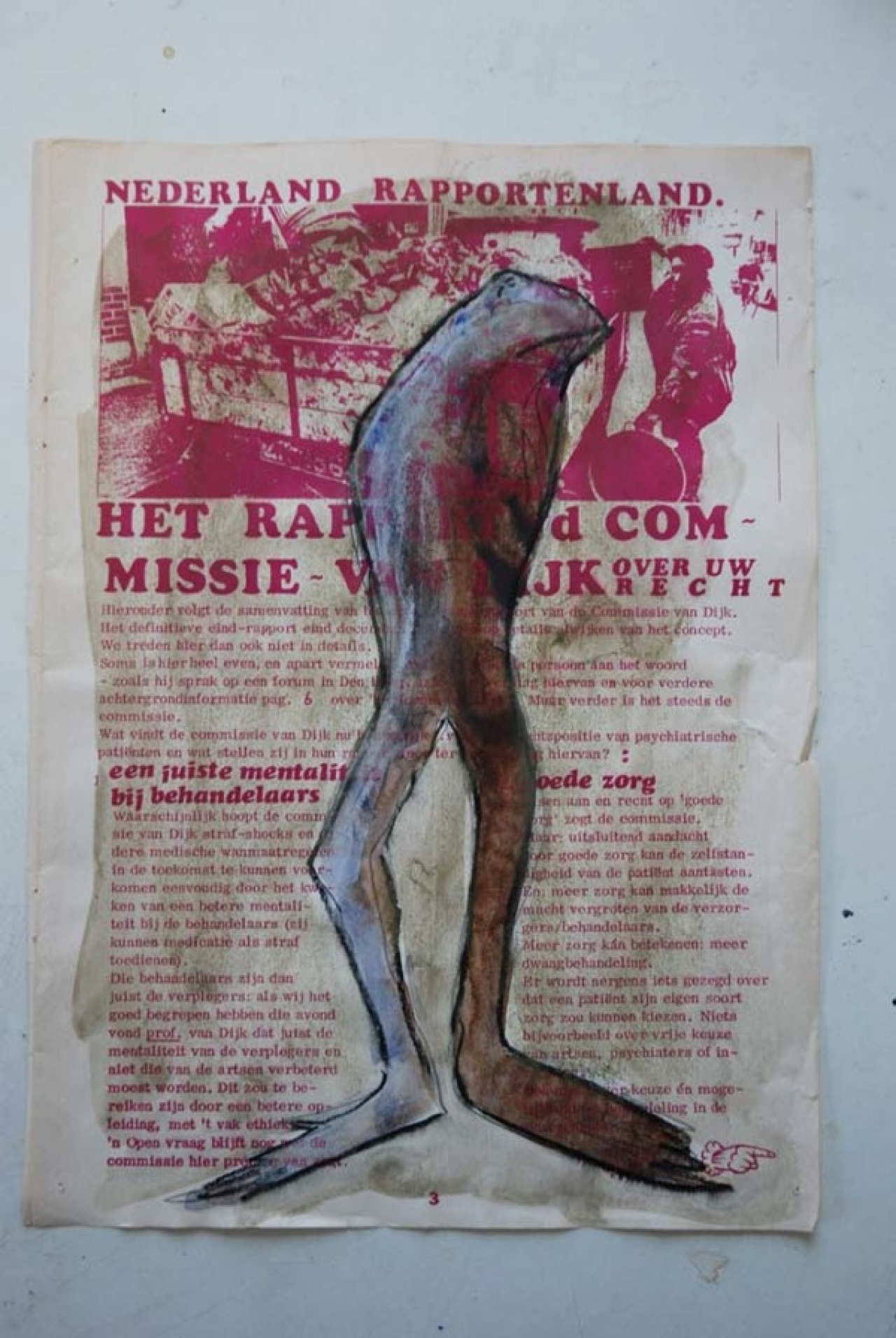 Tentoonstelling “De Gekkenkrant” bestaat uit werk van bijna dertig kunstenaars, die een exemplaar van “De Gekkenkrant” toegestuurd kregen met de vraag daar met beeldend werk op te reageren. Dit leverde een enorme diversiteit aan materiaal op: schilderijen, tekeningen, foto’s, video’s, performances, aangevuld met verhalen en ervaringen.