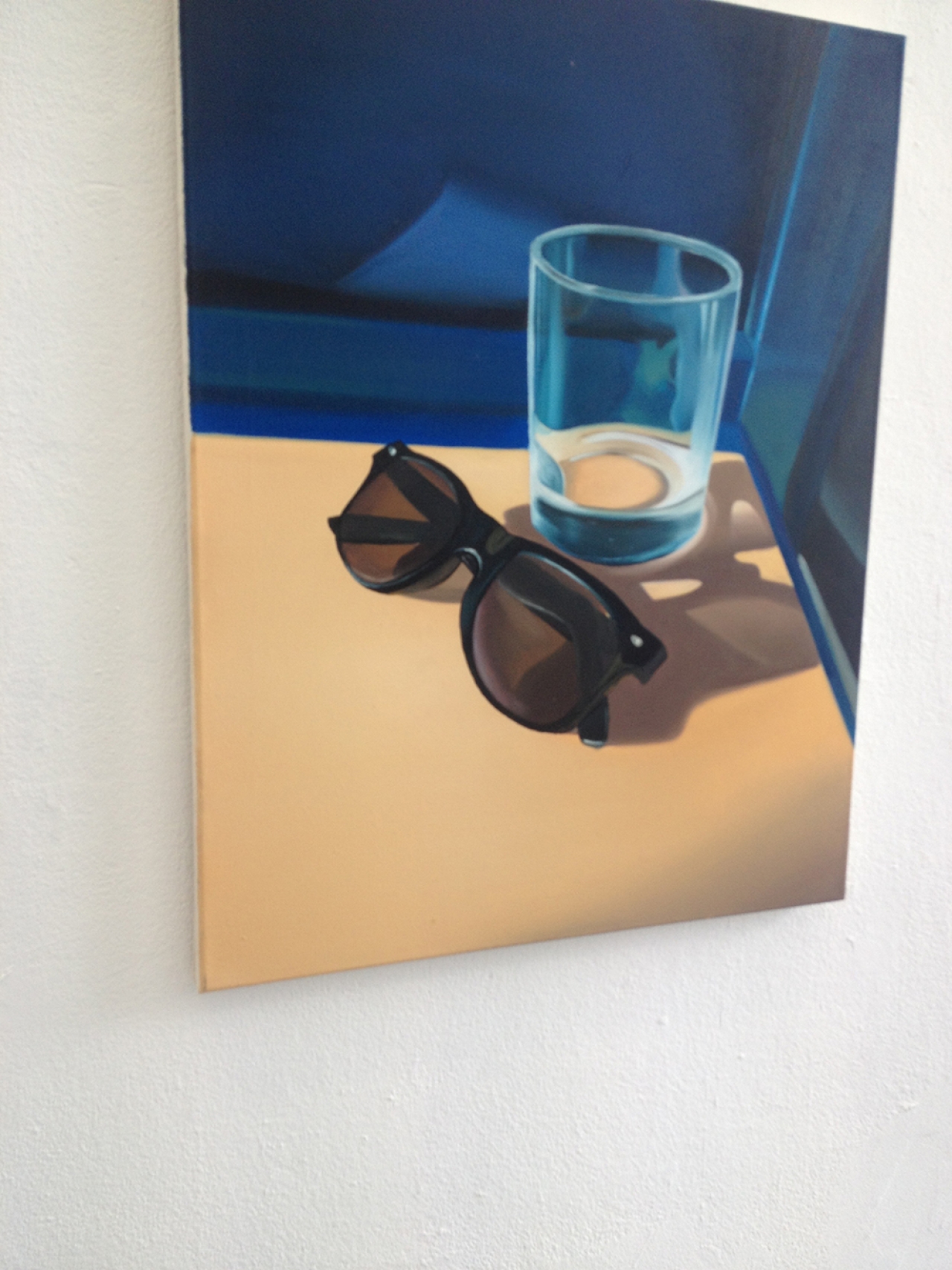 Jhonie van Boeijen, weet waar ze het over heeft, wat ze doet en hoe. Ik heb zelden zo’n jonge kunstenaar zo helder horen spreken. Met aandacht en een fileermes in de vorm van een penseel, tovert ze de meest simpele en huiselijke dingen – waar we vaak niet langer dan nodig is naar kijken- tot hyperrealistische stillevens, met een vleugje poëzie. Een stopcontact, een klok, of de inhoud van de vaatwasmachine.
