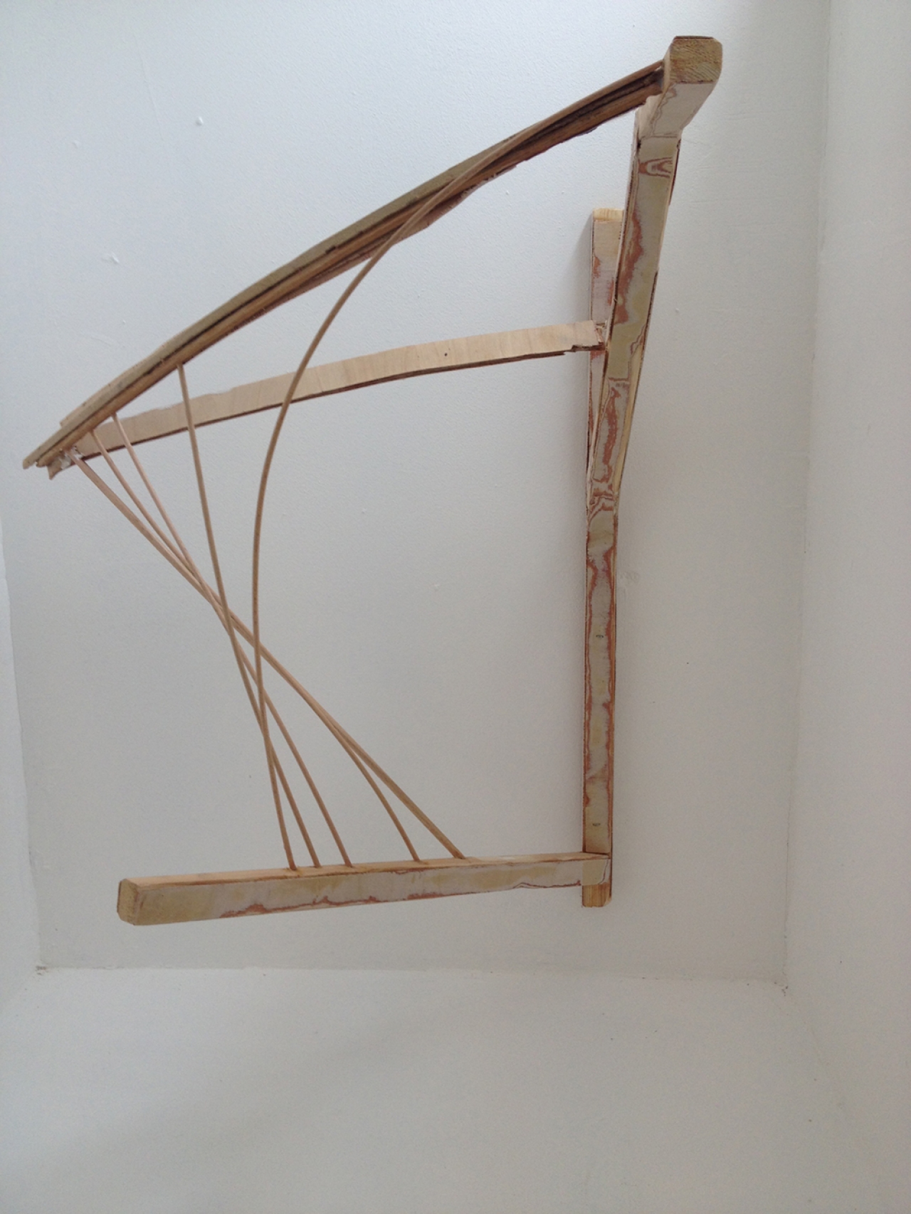 Liza van Vliet knutselt van hout, saté prikkers en touw vormen die het midden houden tussen een dierlijk- en een architecturaal skelet. Zowel klein en ontwapenend, tot een grootse (Calder achtige) mobile. De leden van de jury worden er hebberig van.