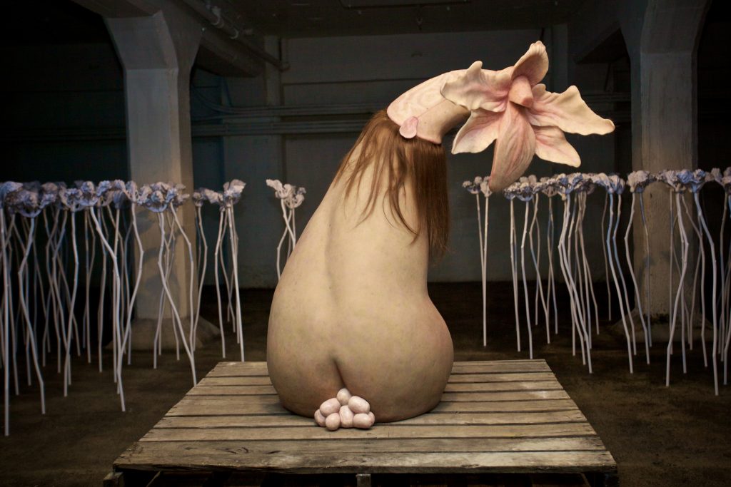 Als laatste lopen we door een veld wuivende beeldjes. Het zijn 3000 vruchtbaarheids ‘venus’ figuren gecombineerd met bloemachtige tentakels, transgene bloemen die Piccinini algoritmisch heeft laten muteren.