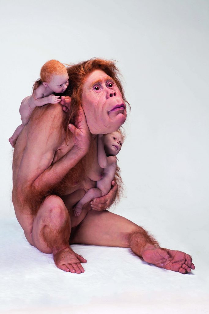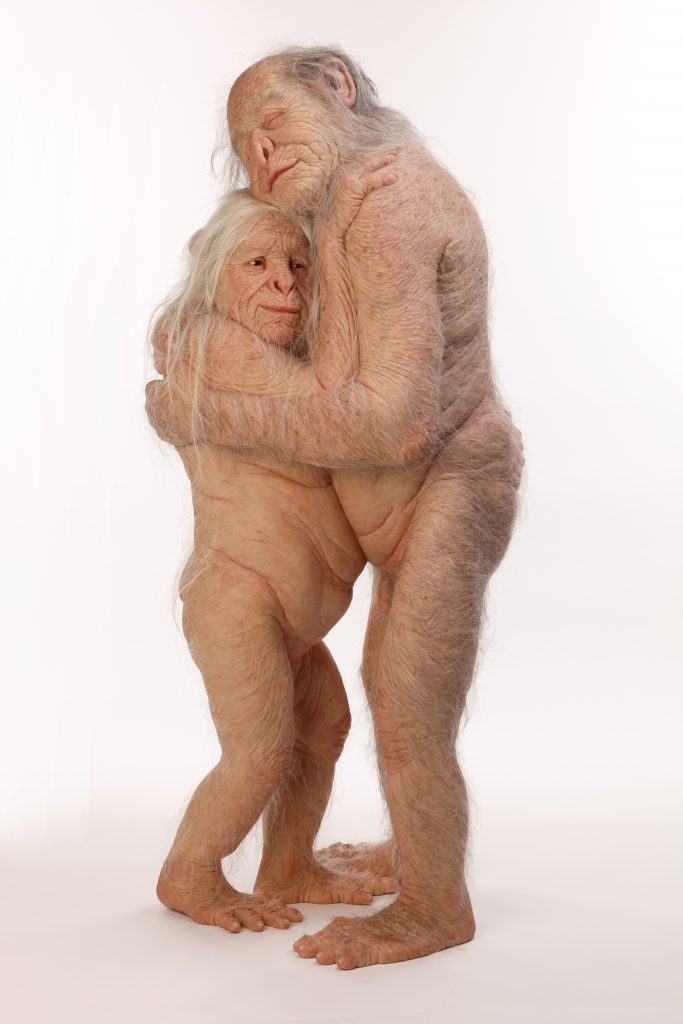 De monsterlijkheid van de sculpturen wordt gecontrasteerd met kenmerken die we als positief ervaren: babyfaces, zachte haartjes, een rustende of blije blik, een verzorgende houding. Die tegenstelling werpt meteen vragen op over genderverhoudingen.