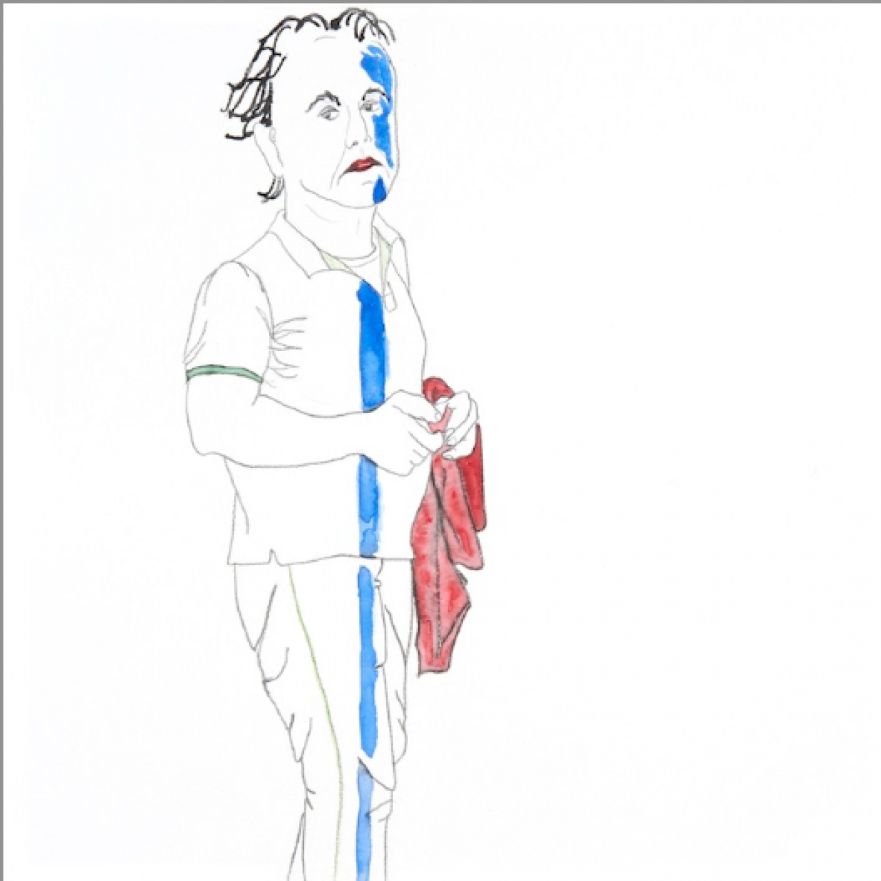 Haar tekeningen zijn geen portretten – ze lijken niet. Het zijn eerder uitkomsten van karakterstudies. In haar beste werk is het alsof de tekening tegen je praat, een verhaal vertelt. De manier waarop een man zijn pet vasthoudt, zegt dan in feite alles over diens persoonlijkheid. Uiteindelijk is toch iedere tekening een kernachtige uitdrukking van hoe iemand is in het moment – los van alles. Ze brengt die kwaliteit tot stand door in haar tekeningen schijnbaar wezensvreemde elementen op te nemen, bijna als een abstract accessoire, een toevoeging van kleur, een niet-functioneel voorwerp, een onbestemdheid in de achtergrond, sporen van de openbare ruimte. Steeds is er iets wat de mens verbindt met de wereld. Juist door die verbinding laat ze zien hoe we ons los daarvan proberen te handhaven als wie we zijn.