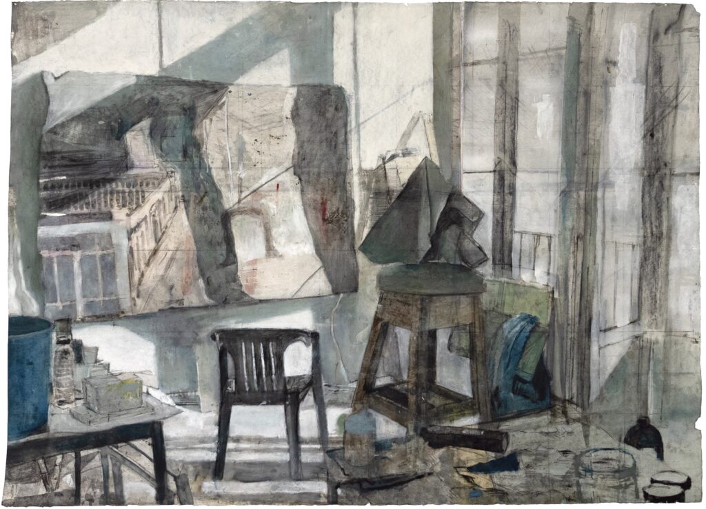 Je schildert soms je eigen atelier. Daarom heb ik het gevoel dat ik hier op de juiste plek ben voor dit interview. En je bent ook geïnteresseerd in interieurs, in je werk zie ik regelmatig kamers en meubels voorbijkomen.
