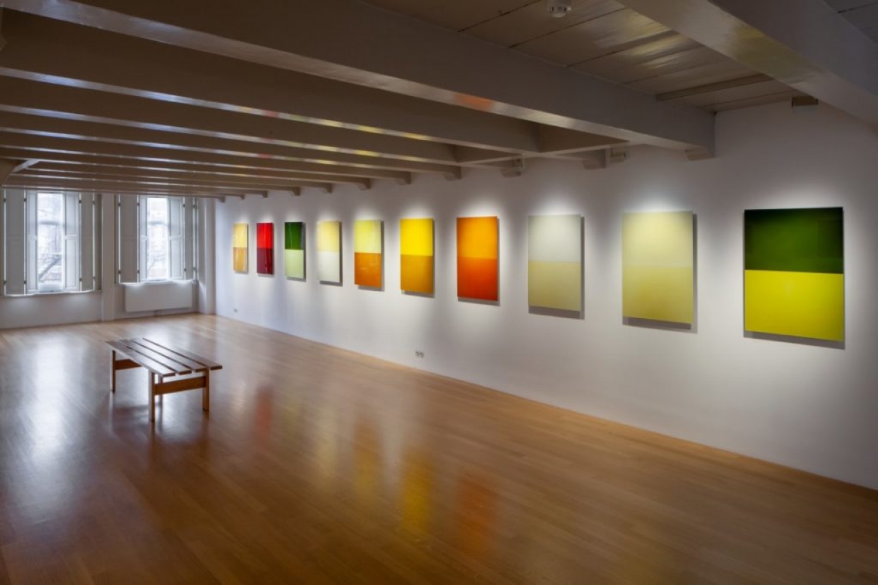 Afgelopen winter was er in Huis Marseille een tentoonstelling waarbij verschillende tonen geel in verband werden gebracht met landschap. Het kunstenaarsduo Arja Hop en Peter Svenson houdt zich bezig met het abstraheren en weergeven van natuurlijke kleurstoffen. Deze kleurstoffen destilleren zij uit planten en leggen vervolgens die kleurresiduen vast doormiddel van fotografie.